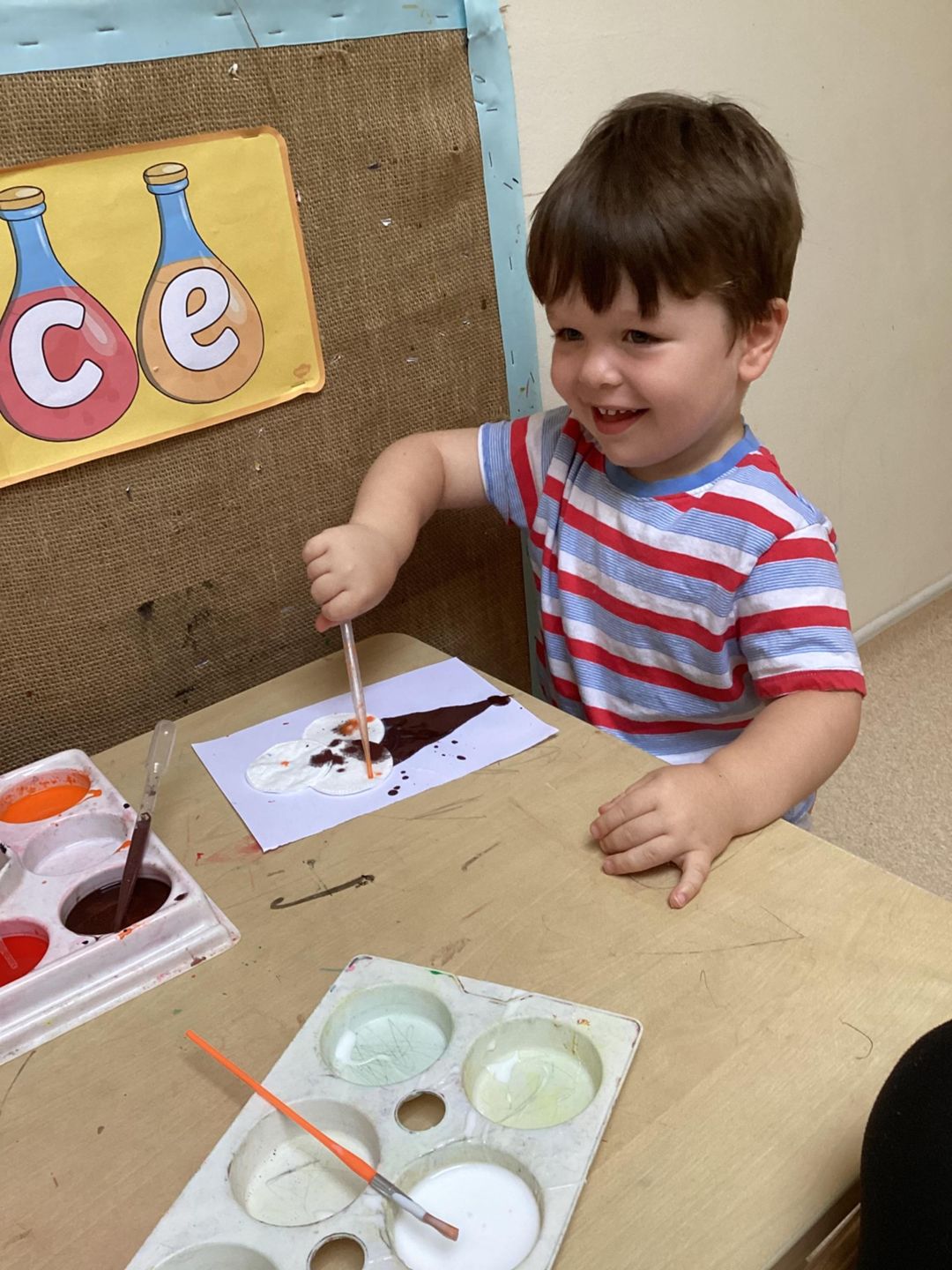 The butterflies had lots of fun creating their ice cream art work. They took turns practicing their cutting skills to make the ice cream cone. Secondly, they used PVA glue to stick cotton wool pads on top of their cones. Finally, they used pipettes with a variety of colours to turn their cotton wool pads into coloured ice cream! The children showed great control with their fine motor skills to use the pipettes. It was exciting to see the wool change colours as they placed their paint on them. Well done Butterflies!