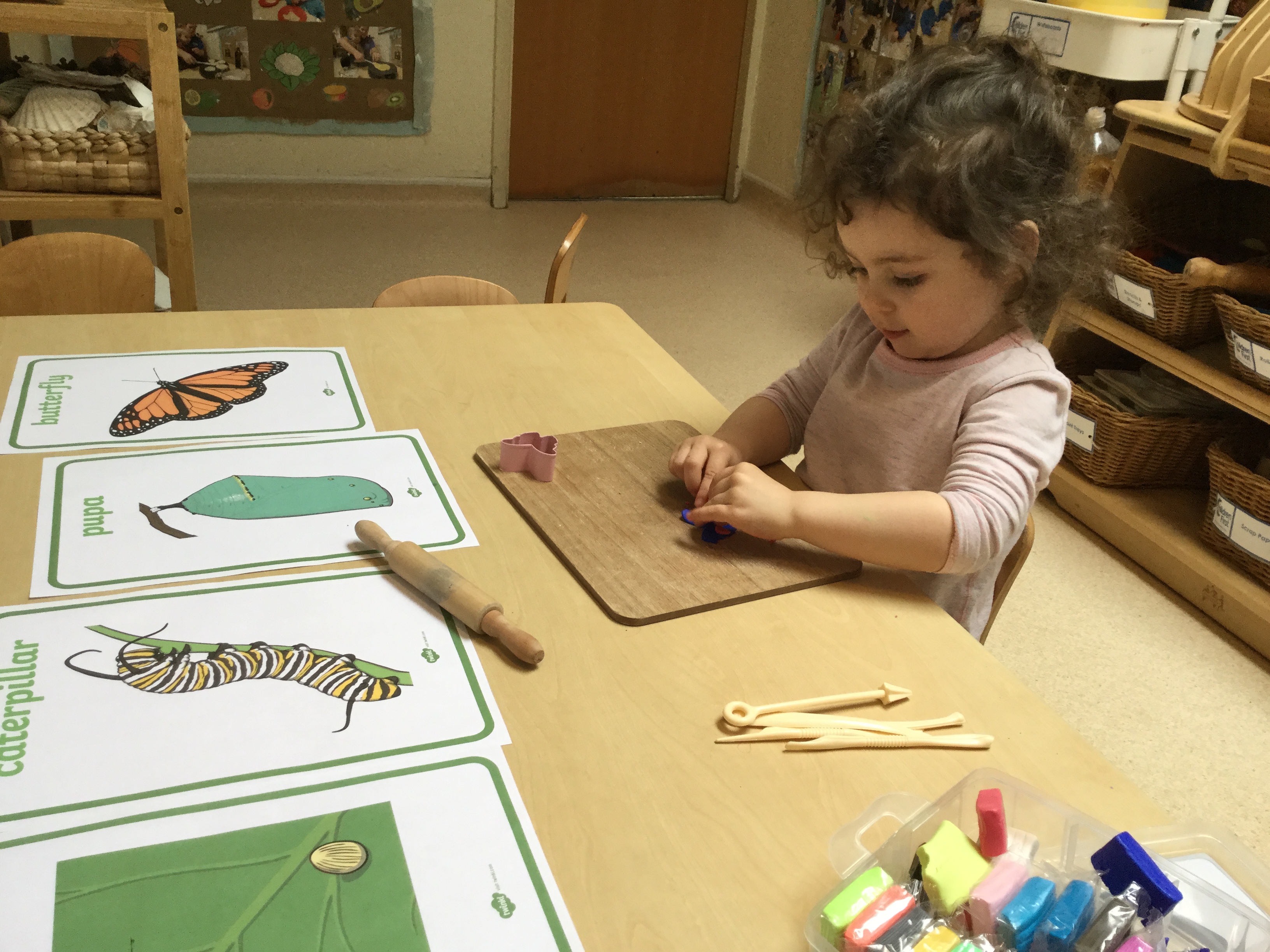 The Butterflies were very excited when our delivery of caterpillars arrived in the post. They have been observing them over time and watching them grow. The team read the children a range of books about the life cycle of a caterpillar and the children learnt what would happen to the caterpillars over time. They supported Shannon to create their own caterpillars using playdough. Exploring their hand muscles as they moulded playdough into a range of shapes to create their own life cycles such as the egg, caterpillar, cocoon and then the beautiful butterfly.