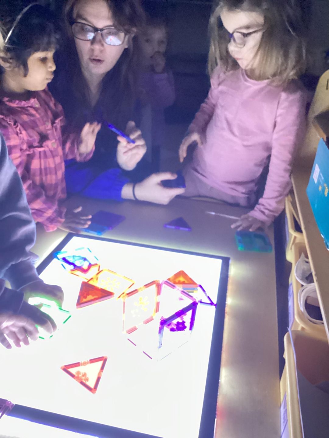This week, the Grasshoppers were truly inspired by the fireworks and dove into building various structures with the magnetic tiles. They loved taking part in our light and building activity, where they got to construct different designs. The children also explored mixing colours by combining tiles to create new shades. They used exciting new vocabulary, such as "bright" and "dark," while exploring and experimenting with shadows. It was a delightful time of creativity and discovery for everyone!