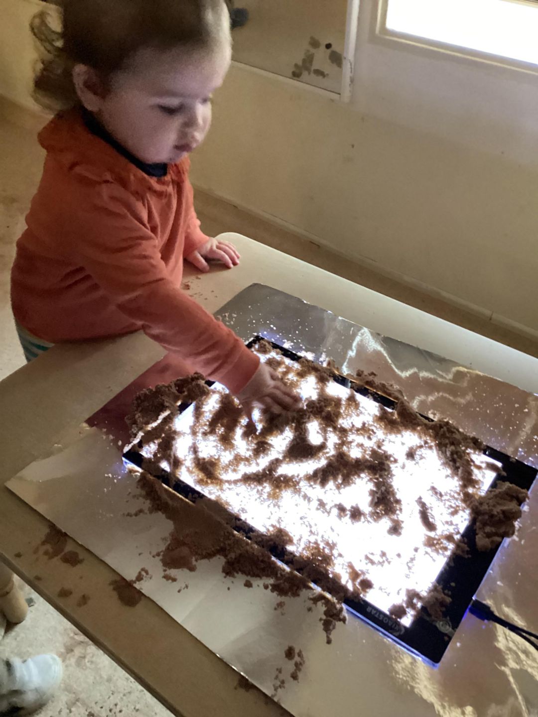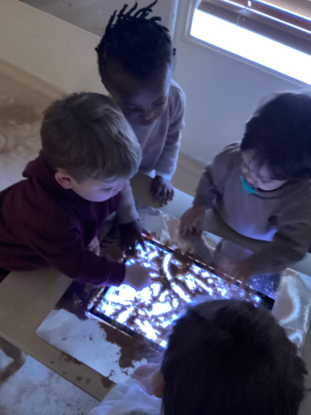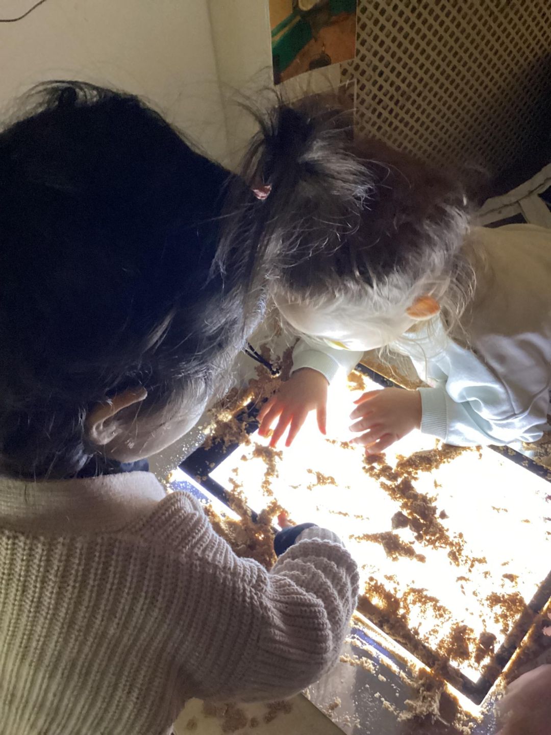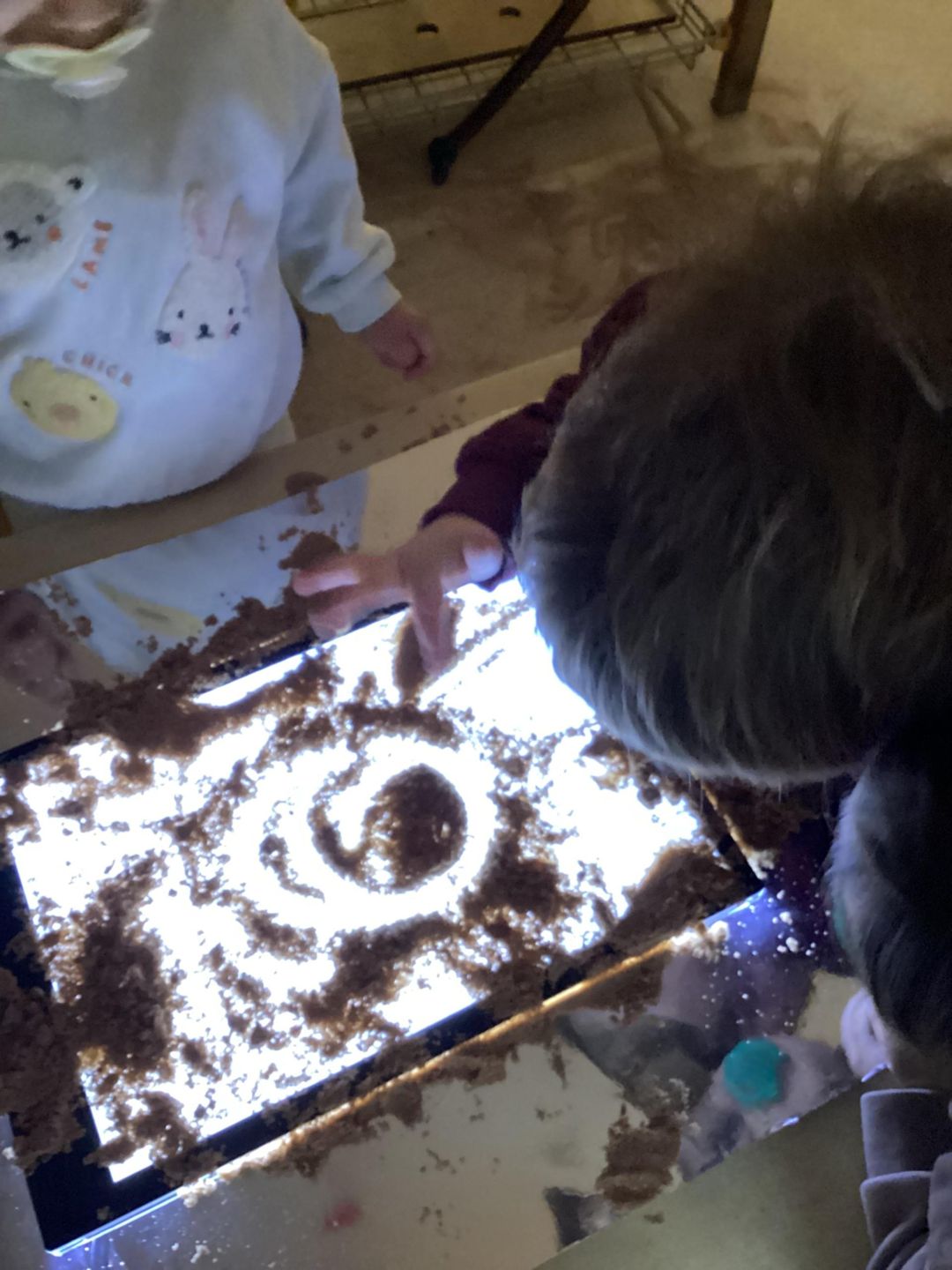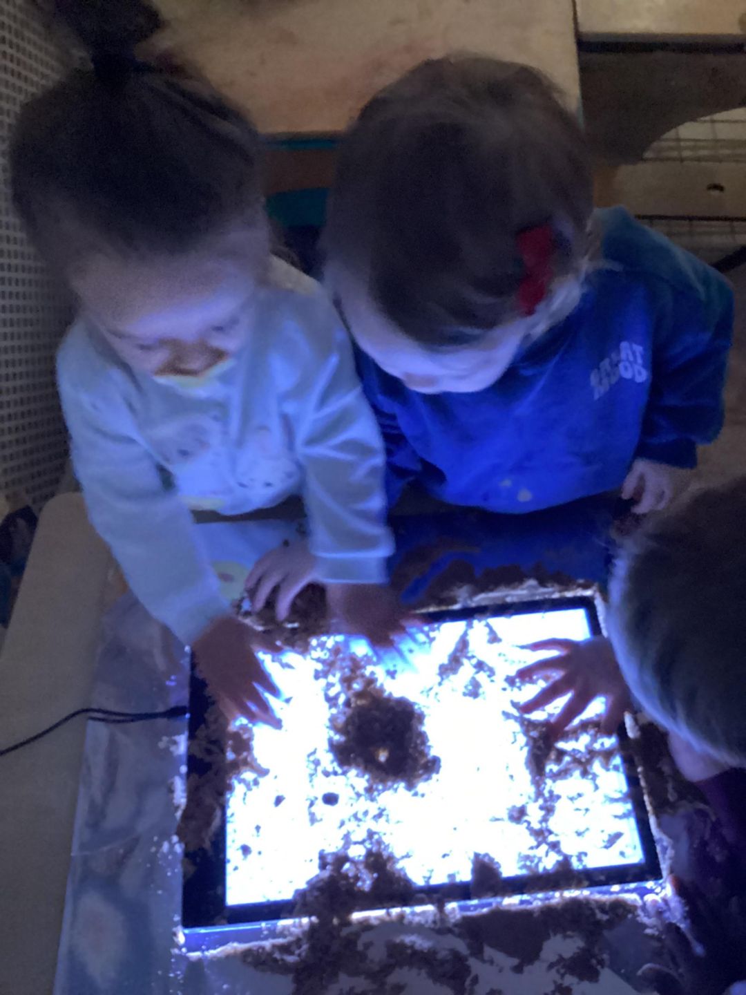 The Ladybirds had a delightful time exploring a new experience for mark making using a light board. They thoroughly enjoyed creating a variety of patterns; some made circles while others experimented with patting and different techniques to produce marks.