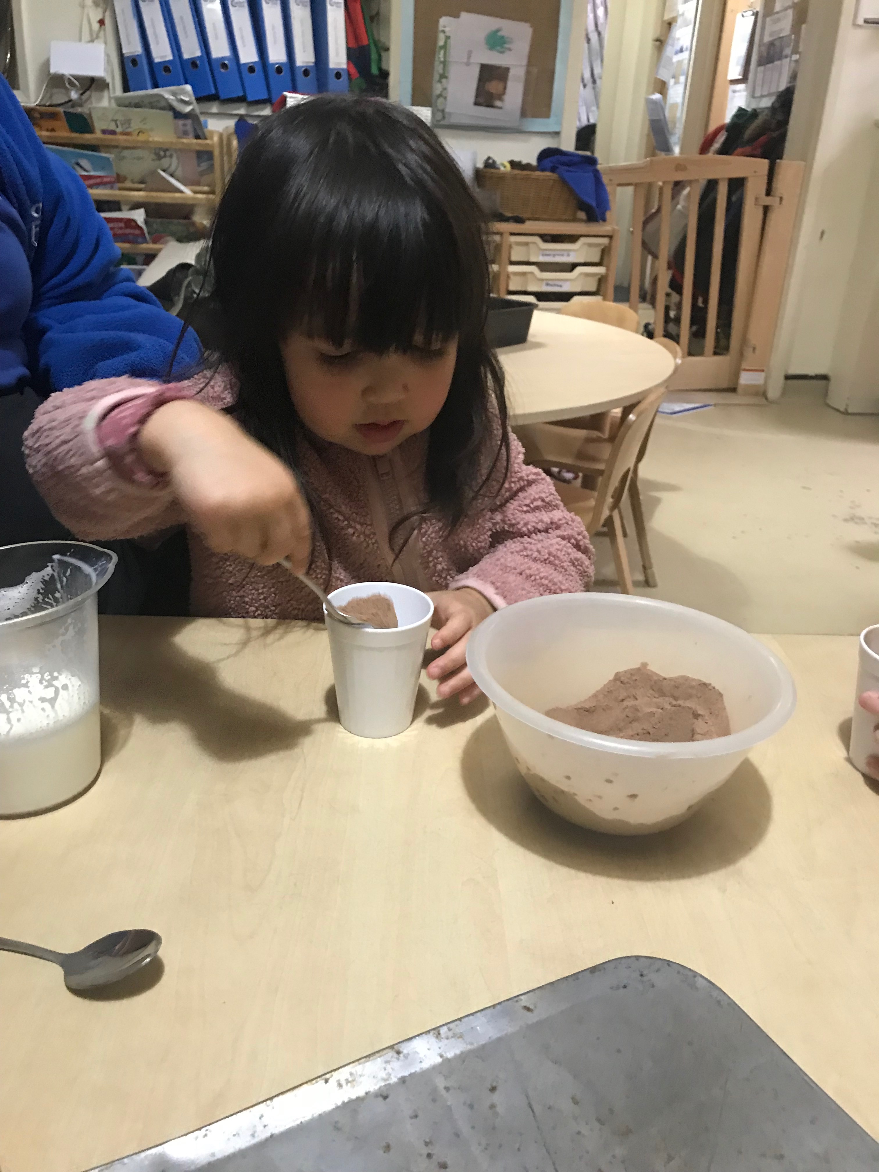 The children scooped in hot chocolate and looked at the change in state as the powder dissolved in the liquid.