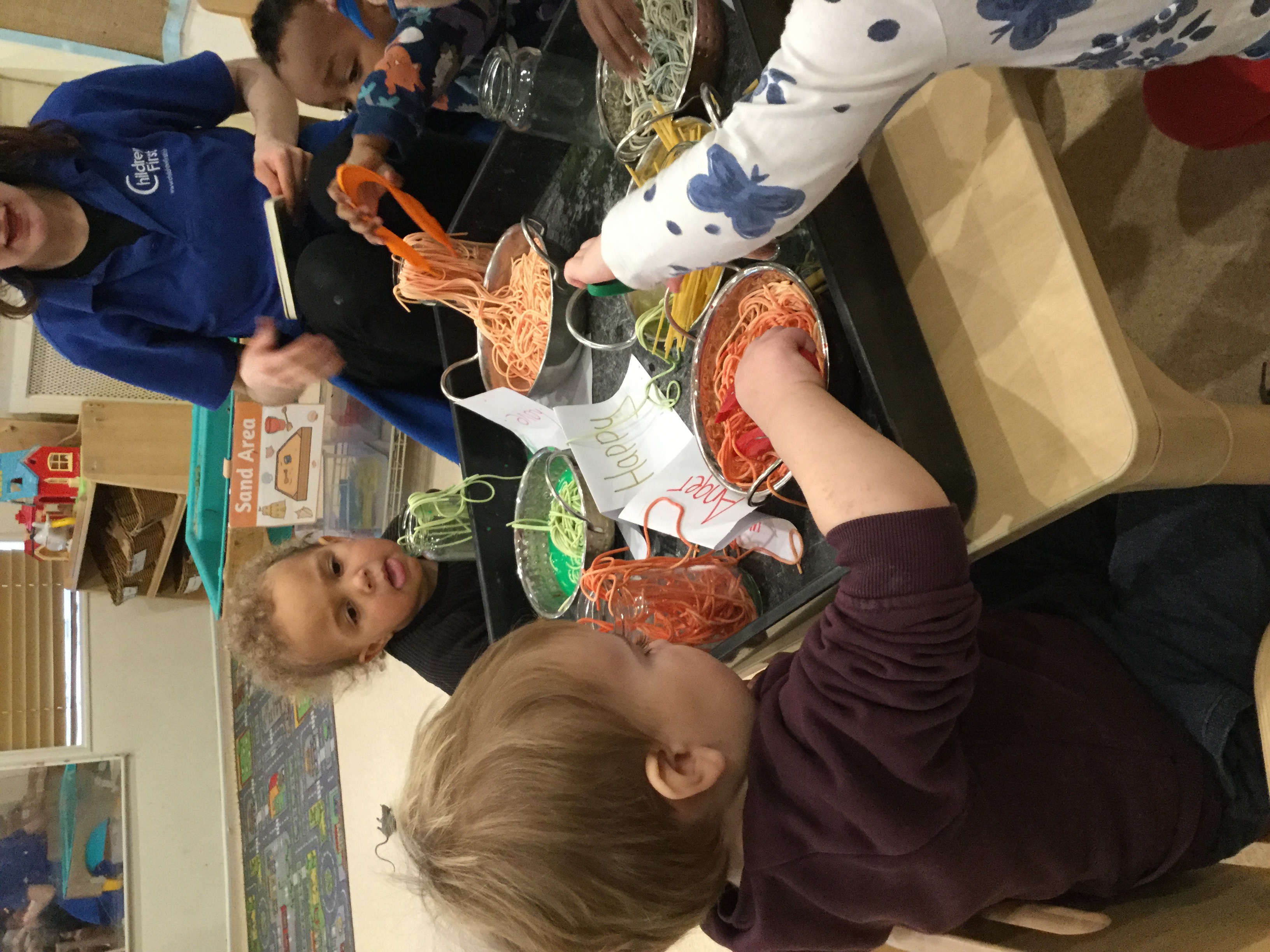 The Ladybirds explored a messy monster feelings activity. Abi read the children the book Colour Monsters. She talked about each colour monster and how they were feeling. Children were engrossed in the story watching Abi as she showed the various ways the monsters were feeling including worried, angry, scared, happy and excited. The children talked about how they were feeling and excitedly showing the actions to various feelings. The children used the messy monster messy play to add their feelings to the jar. Children were bale to explore the sensory experience of the different monsters and feelings and talk about the feelings they were experiencing as they added them to the jar. Exploring their personal, social and emotional development and managing their own feelings.