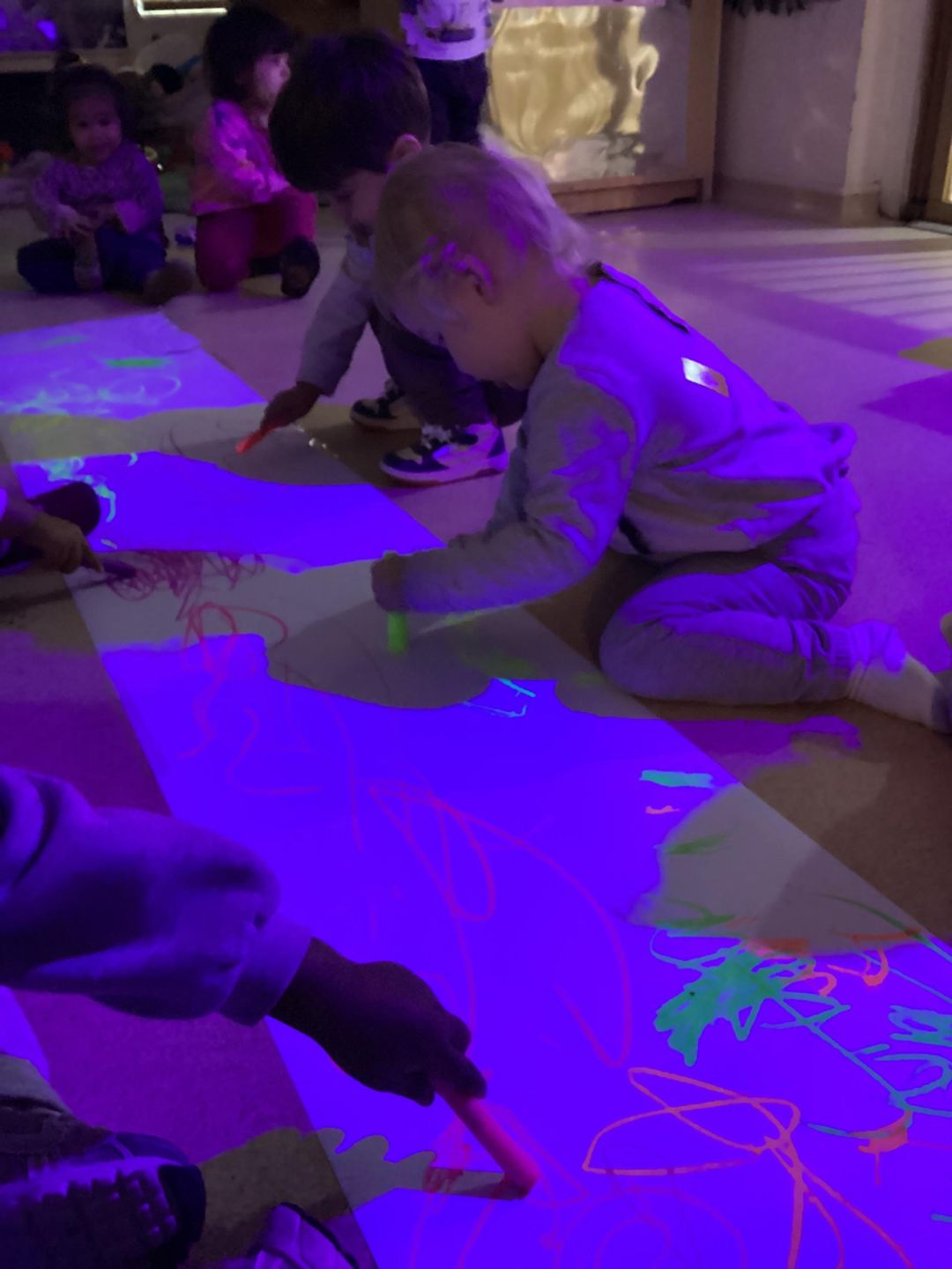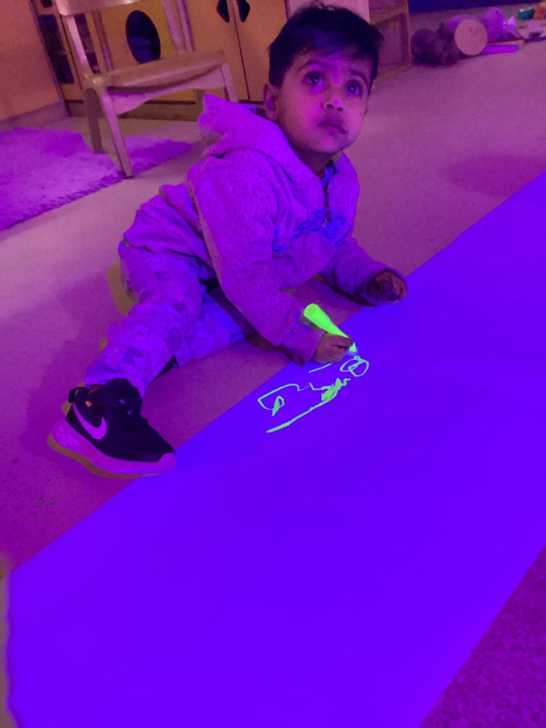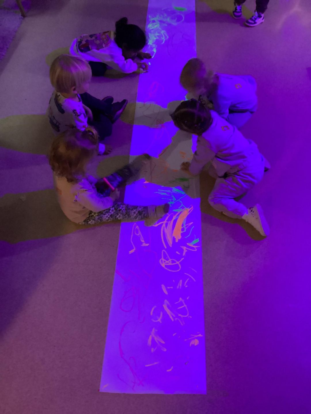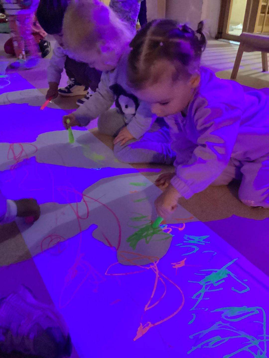 The children in Ladybirds have taken part in an exciting colourful activity this week. The children used neon paint pens to create their marks on the large scale paper. The Ladybirds experimented with making different lines, circles some children even drew simple shapes. Well done Ladybirds!