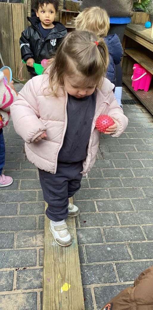 Today, the Ladybirds took part in a physical activity session in the garden. The children engaged in a variety of activities including balancing, throwing, bat and ball, and jumping.
