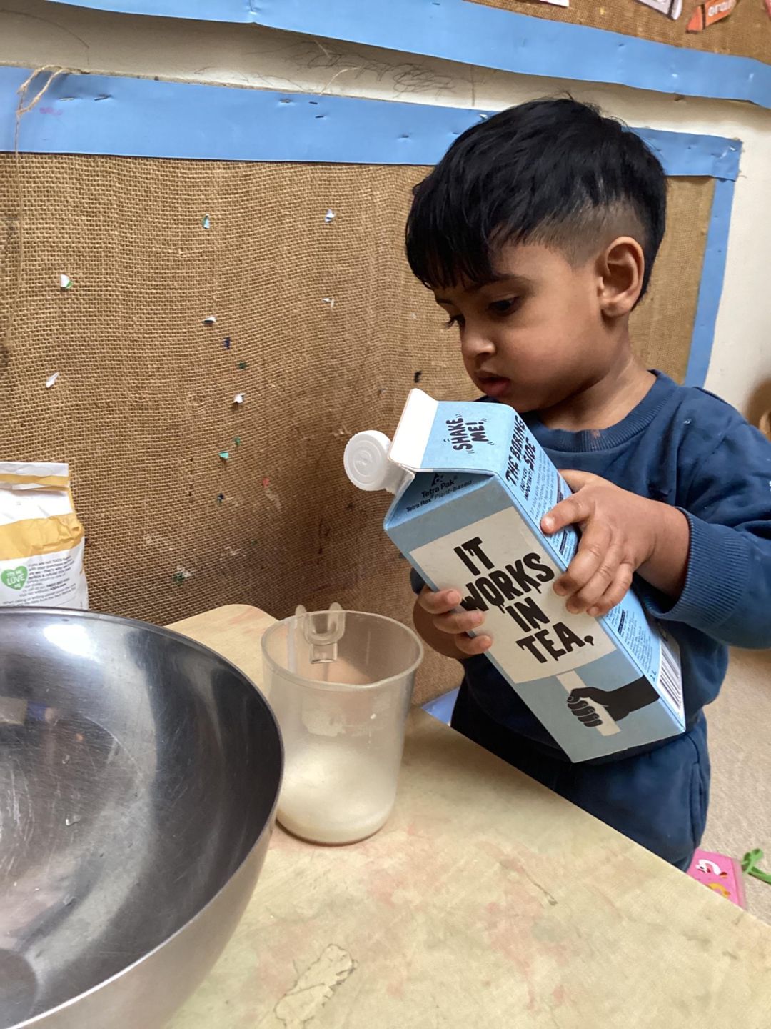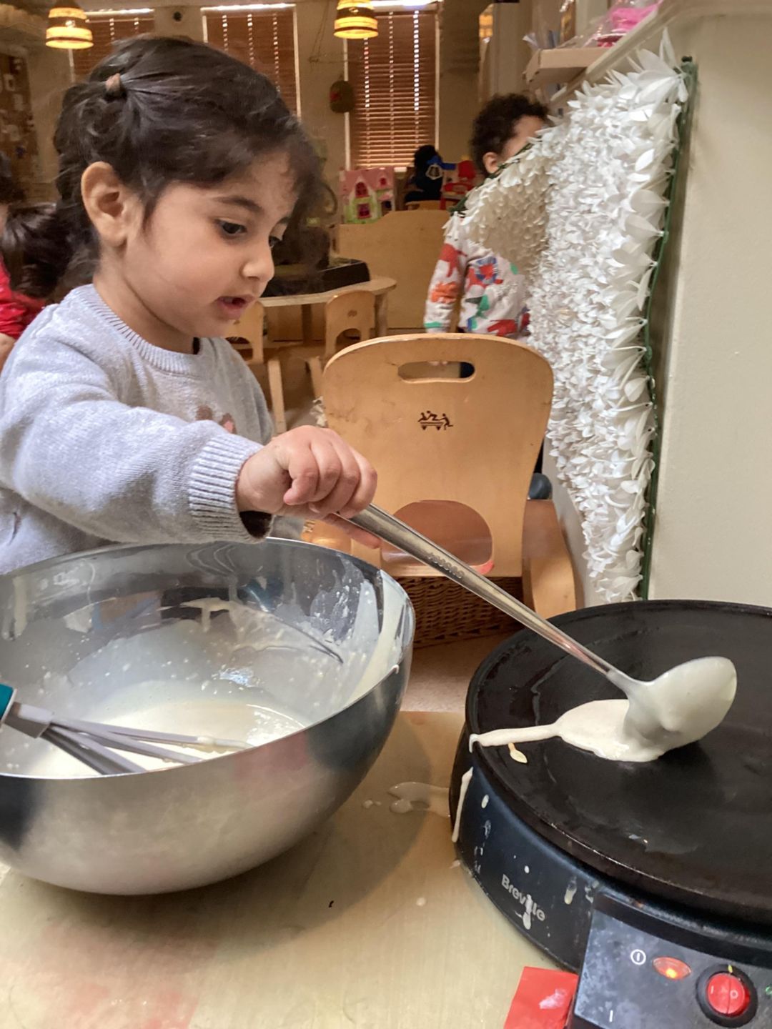 The children in Butterflies have had lots of fun this week for Pancake Day! The children carefully measured each of the ingredients before mixing it all carefully together. When the mixture was ready, the children carefully poured some mix onto the hot plate before using a spatula to flip their pancakes. The children displayed excellent listening skills about keeping safe and working together. Well done Butterflies!