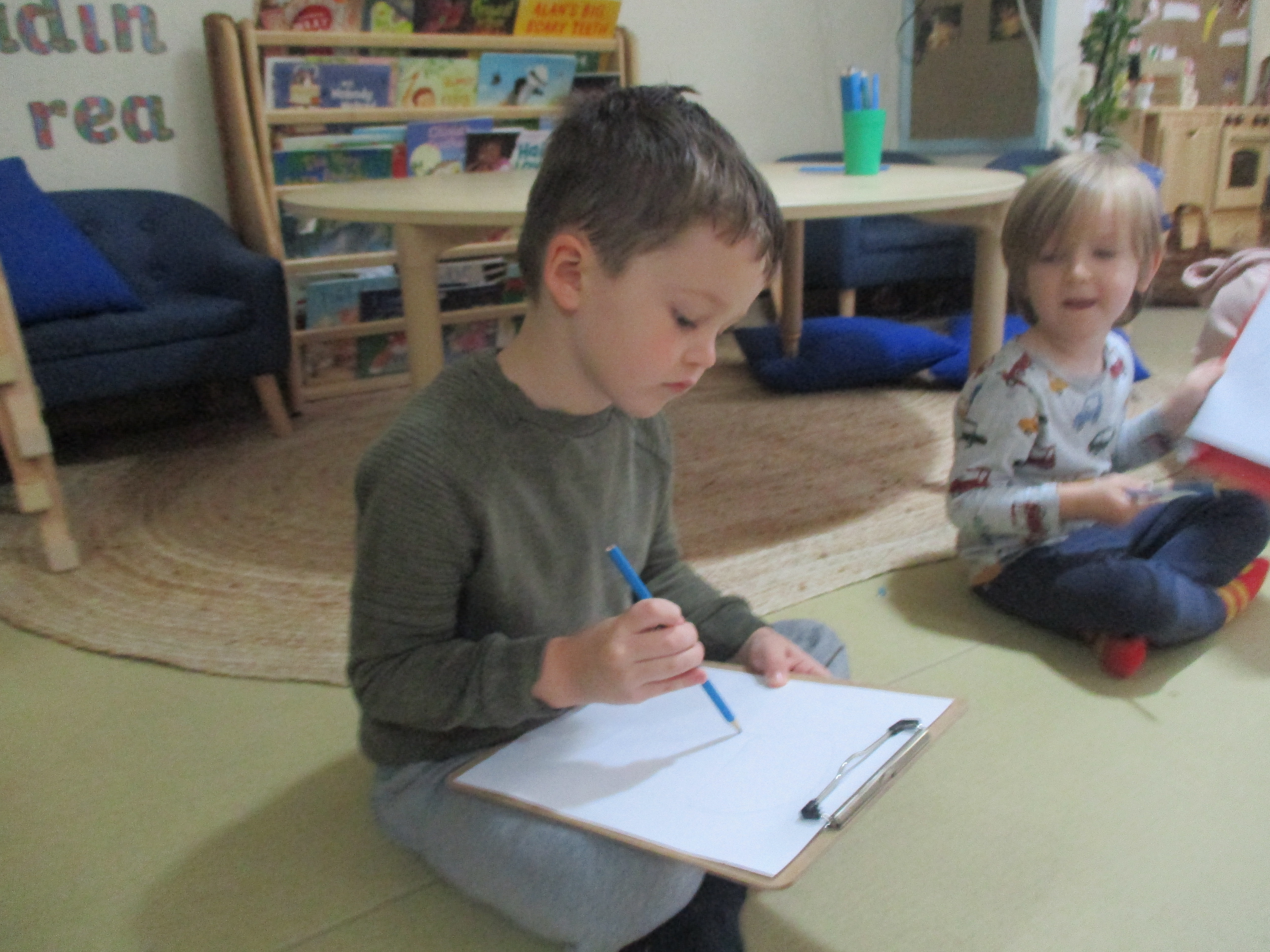 Children grasped pencils in pincer grasps in their dominant hands and began to draw and sketch.
