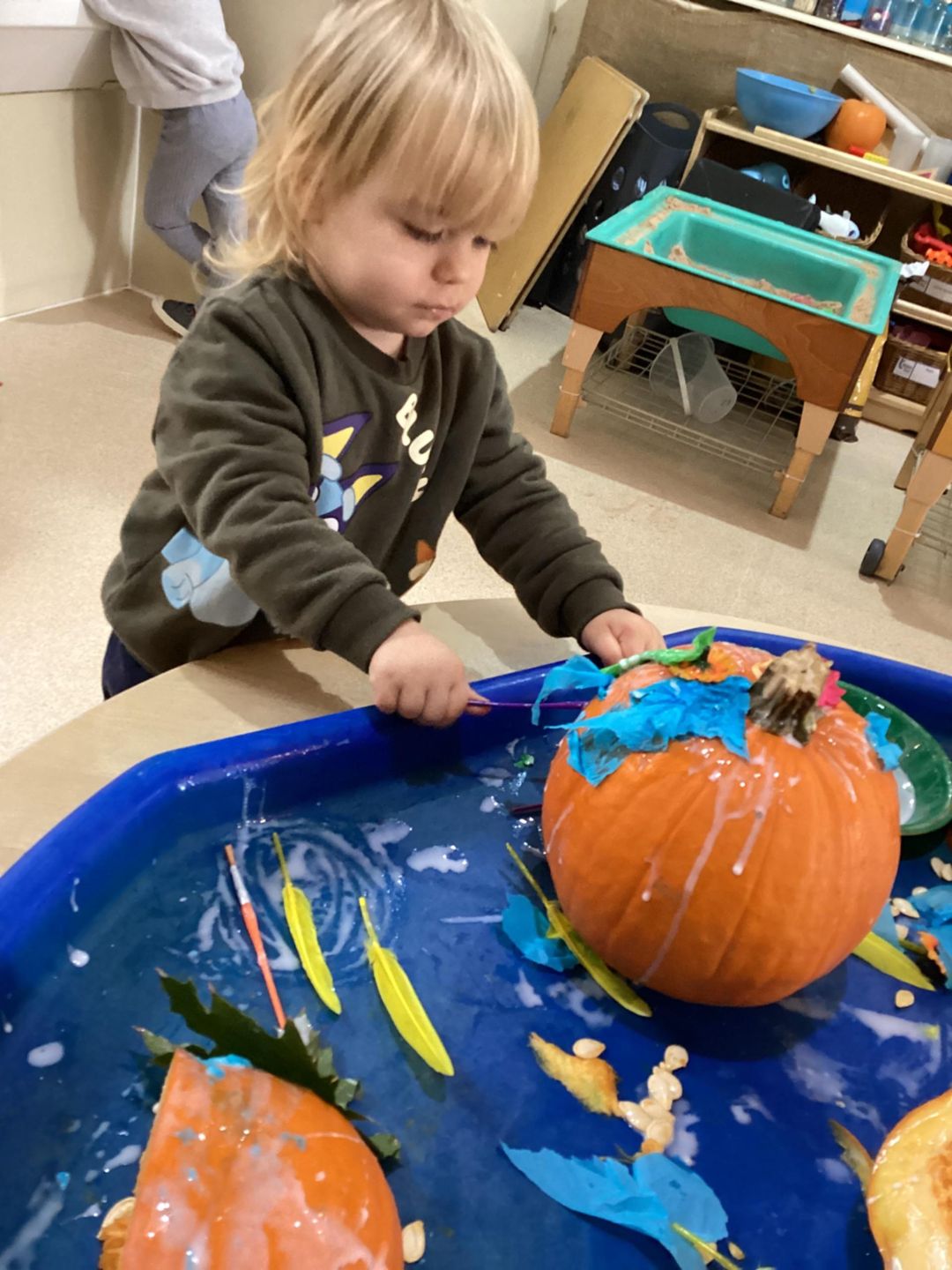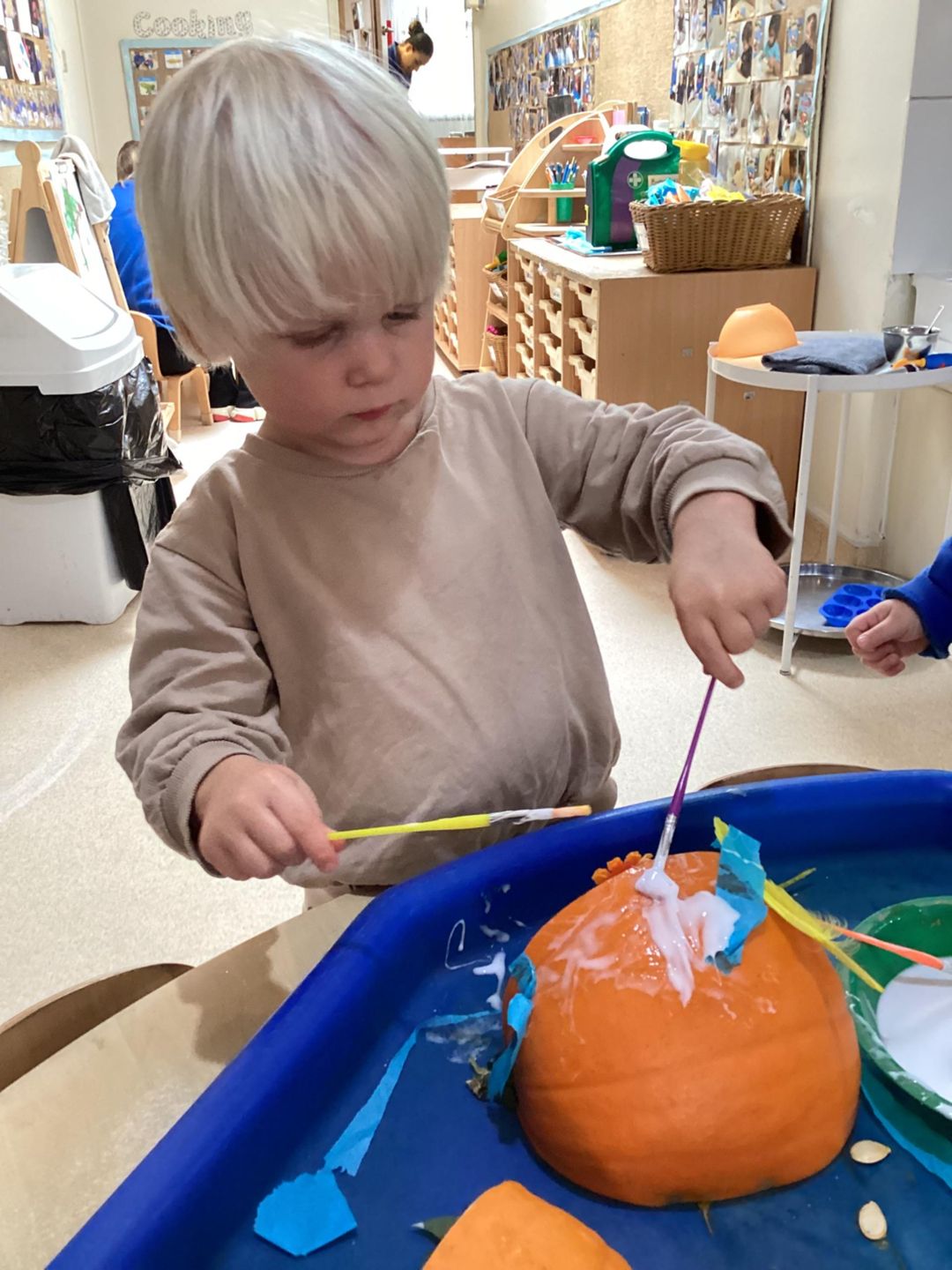 Today the butterflies had a great time decorating some pumpkins, they got to explore the insides of the pumpkins, and glue different materials such as paper, leaves, fake flowers and feathers to make their pumpkins look amazing. Everyone really enjoyed this activity and got really creative, well done butterflies.