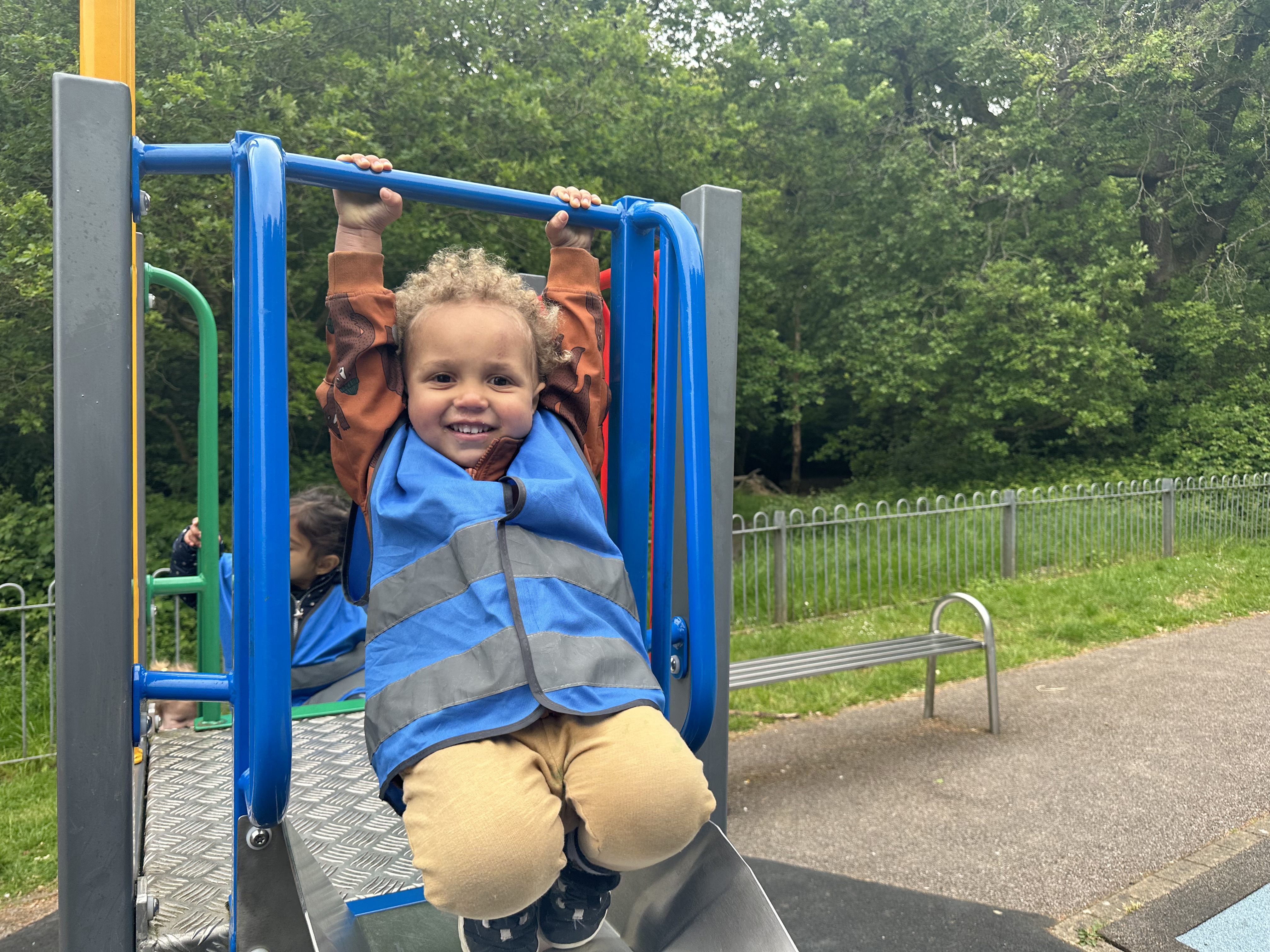 The Butterflies went to the local play park to explore some risky climbing. The children explored large scale physical movements as they tackled the various physical obstacles such as climbing ropes, steps, slides and much more. Practitioners were on hand to support the children as they took risks in their physical abilities. Gross motor skills were used to walk in a line, pull themselves up, stretch and reach up and down. It was a very exciting way to explore physical risky play.