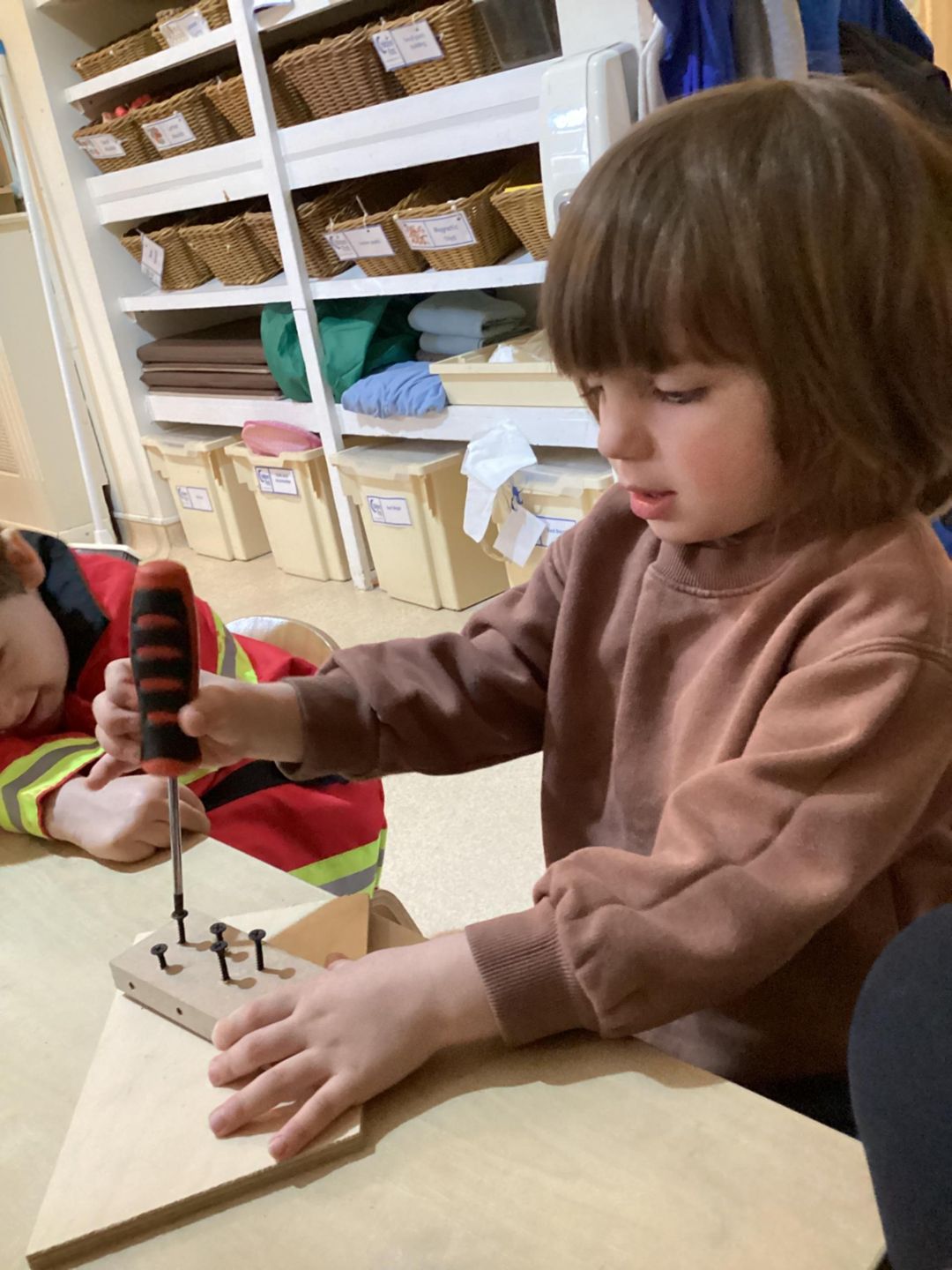 The Grasshoppers gathered their tools and set to work on their latest construction project. They gripped the hammer and drove nails deep into the wooden beams, securing the frame of their tiny structure. Next, they switched to the screwdriver, carefully twisting screws into place to reinforce the joints and ensure everything held together tightly. Finally, the grasshoppers took up the saw, working to push and pull the blade back and forth, cutting planks of wood to the precise lengths they needed. The grasshoppers admired their handiwork—a sturdy little shelter built entirely by themselves.