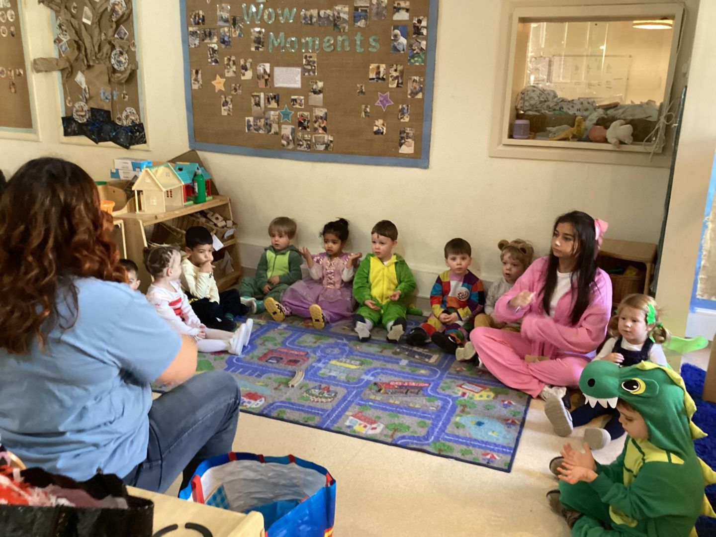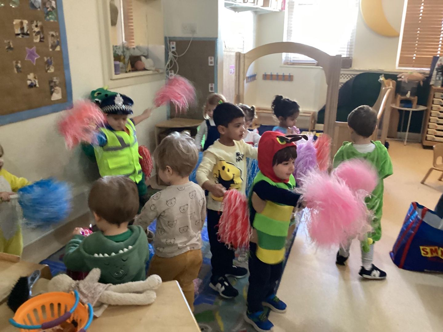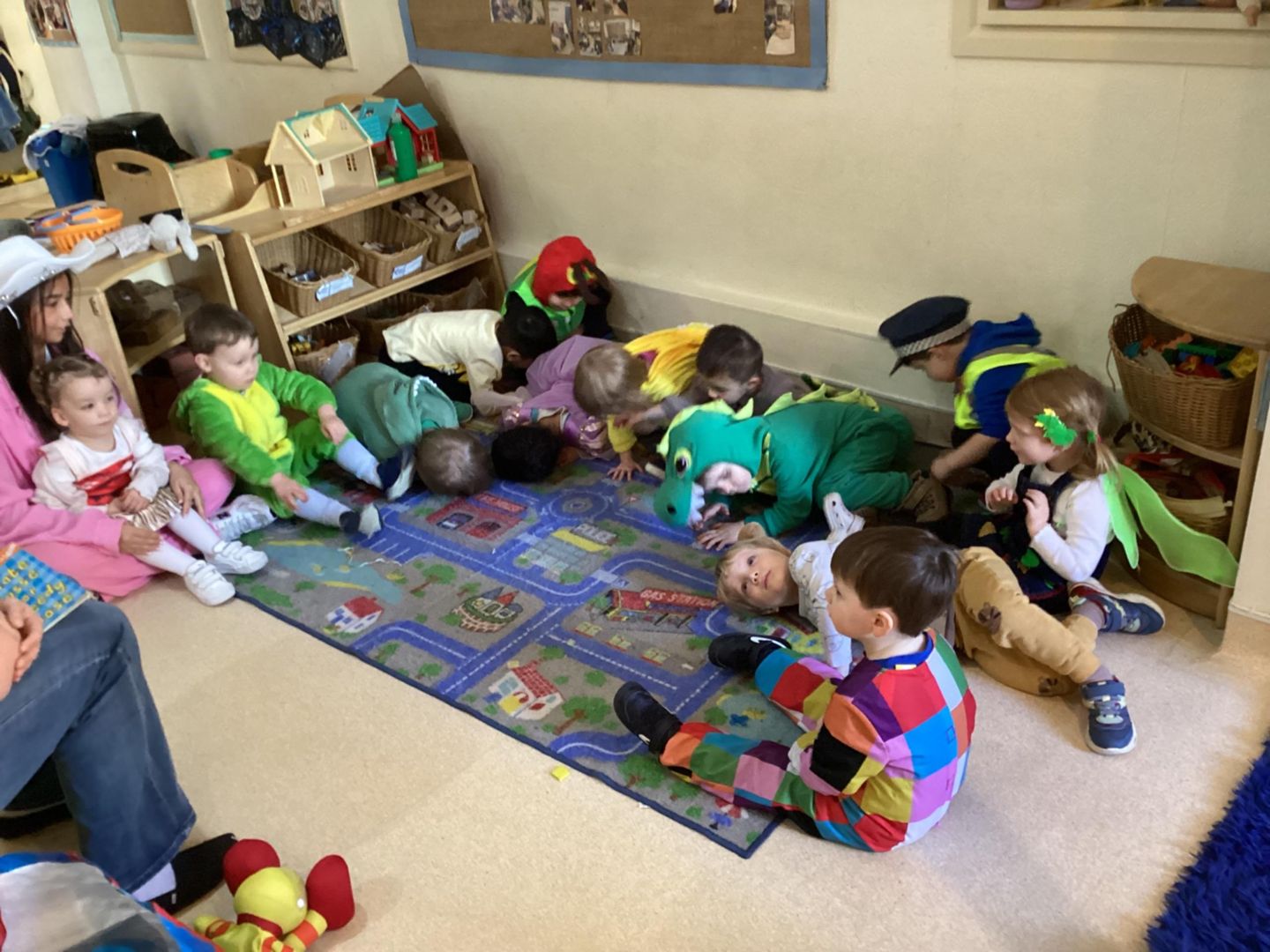 During this week's Robot Reg session, the children enjoyed a variety of activities. The children participated enthusiastically in their World Book Day costumes while learning about the ‘g’ sound. The children had a great time during a dance party whilst performing actions that start with ‘g’. They also listened to the rhyming book "Chocolate Mousse for a Greedy Goose," played a game of Sleeping Bunnies, and joined in on Robot Reg’s exciting playdough rave.