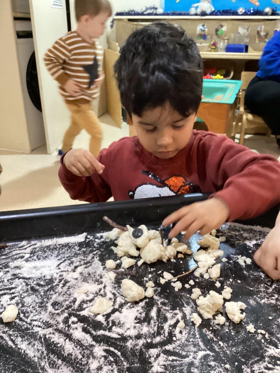 The butterfly children had lots of fun making their own versions of snowmen for Eddie the elf! Firstly, the children used a variety of ingredients to make their playdough. The children then used a variety of equipment and natural resources like twigs, buttons and pipe cleaners. Some children even made some melted snowmen as they thought it was quite warm inside! The Butterflies also used lots of different fine motor skills to mould their dough into their desired shapes. Well done butterflies!