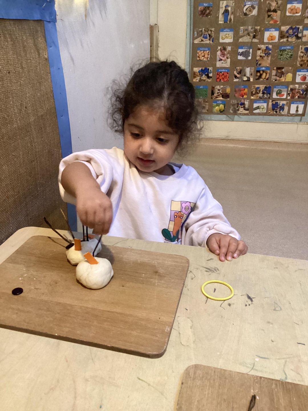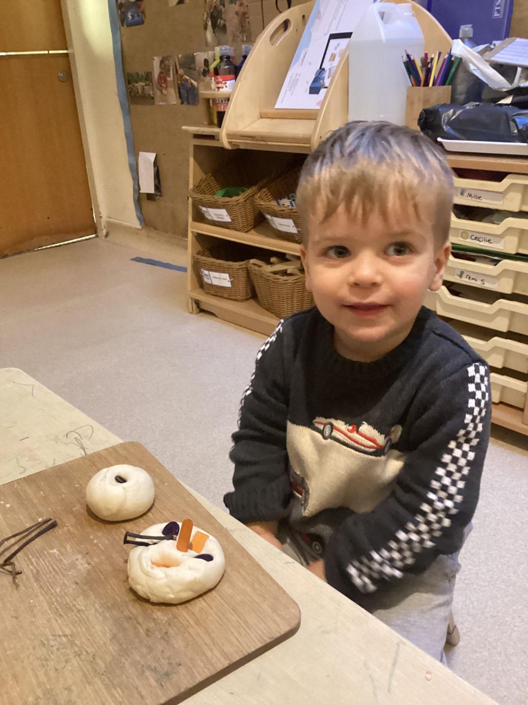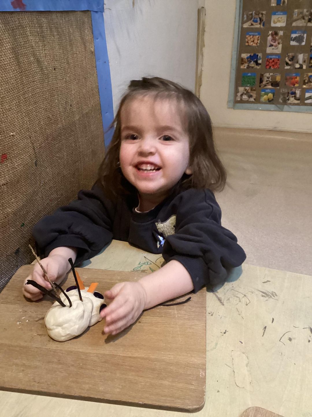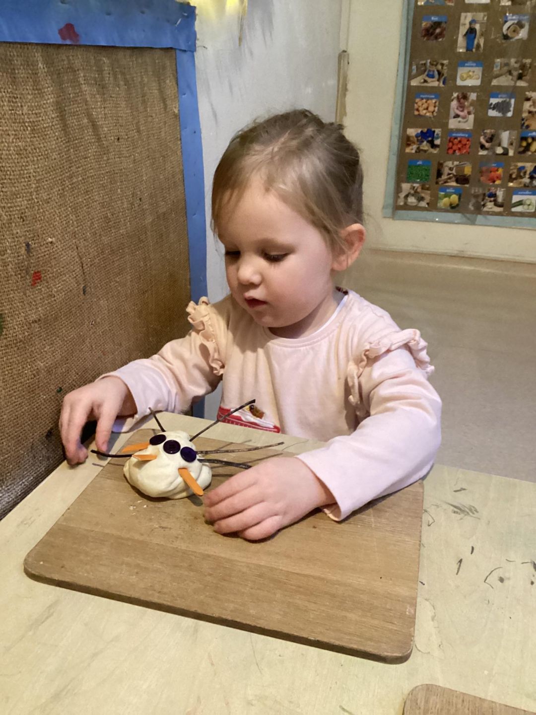 The butterflies enjoyed making their very own play dough snowmen! The children worked on their gross and fine development by rolling and flattening the playdough. They even counted how many eyes, arms and nose their snowman needed and placed them on their play dough! Well done Butterflies.