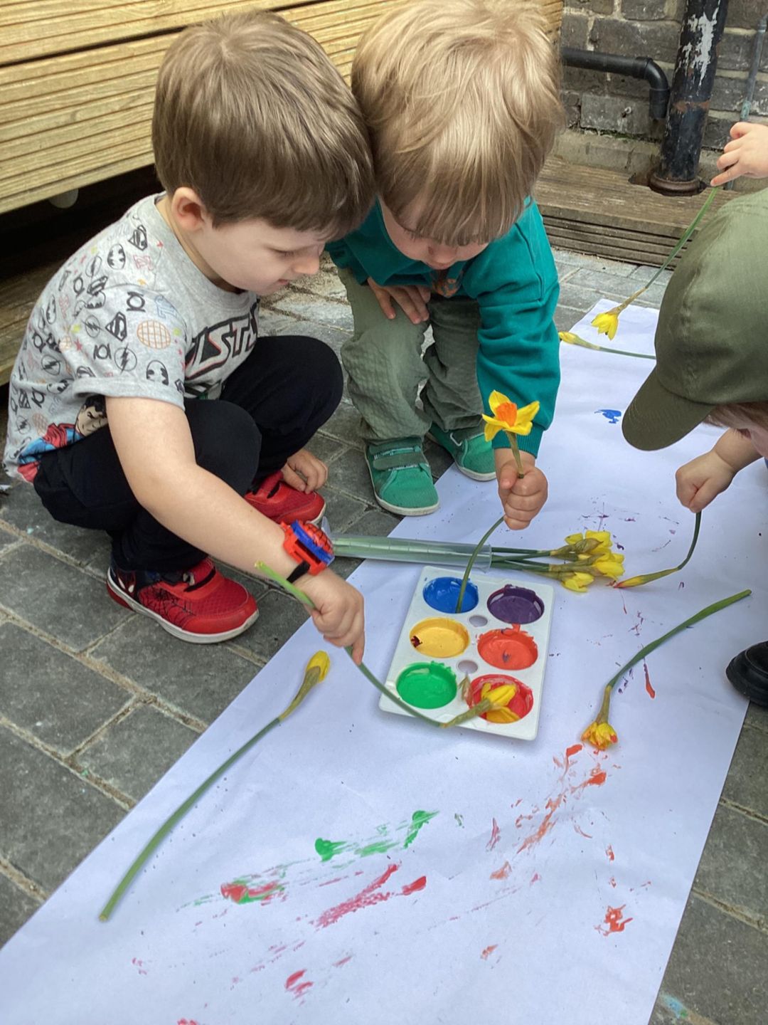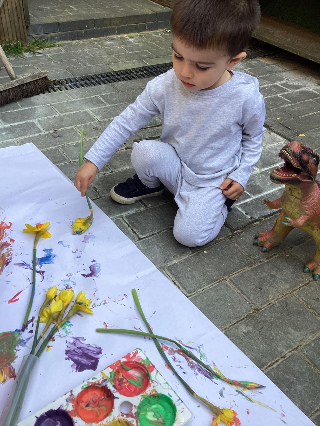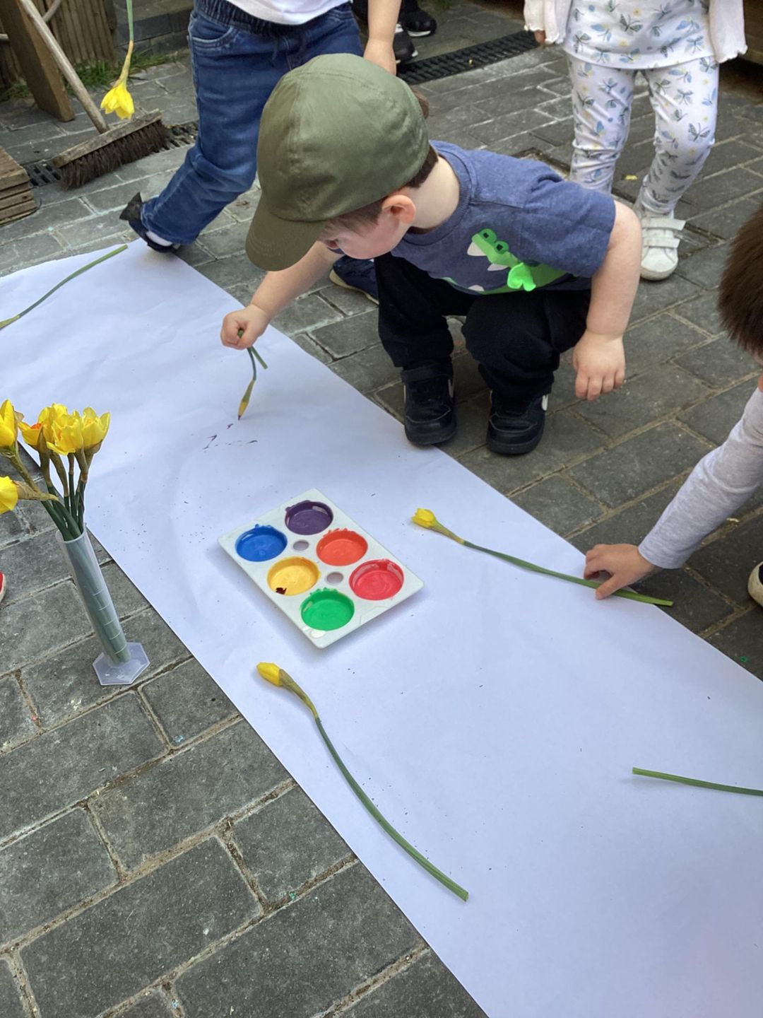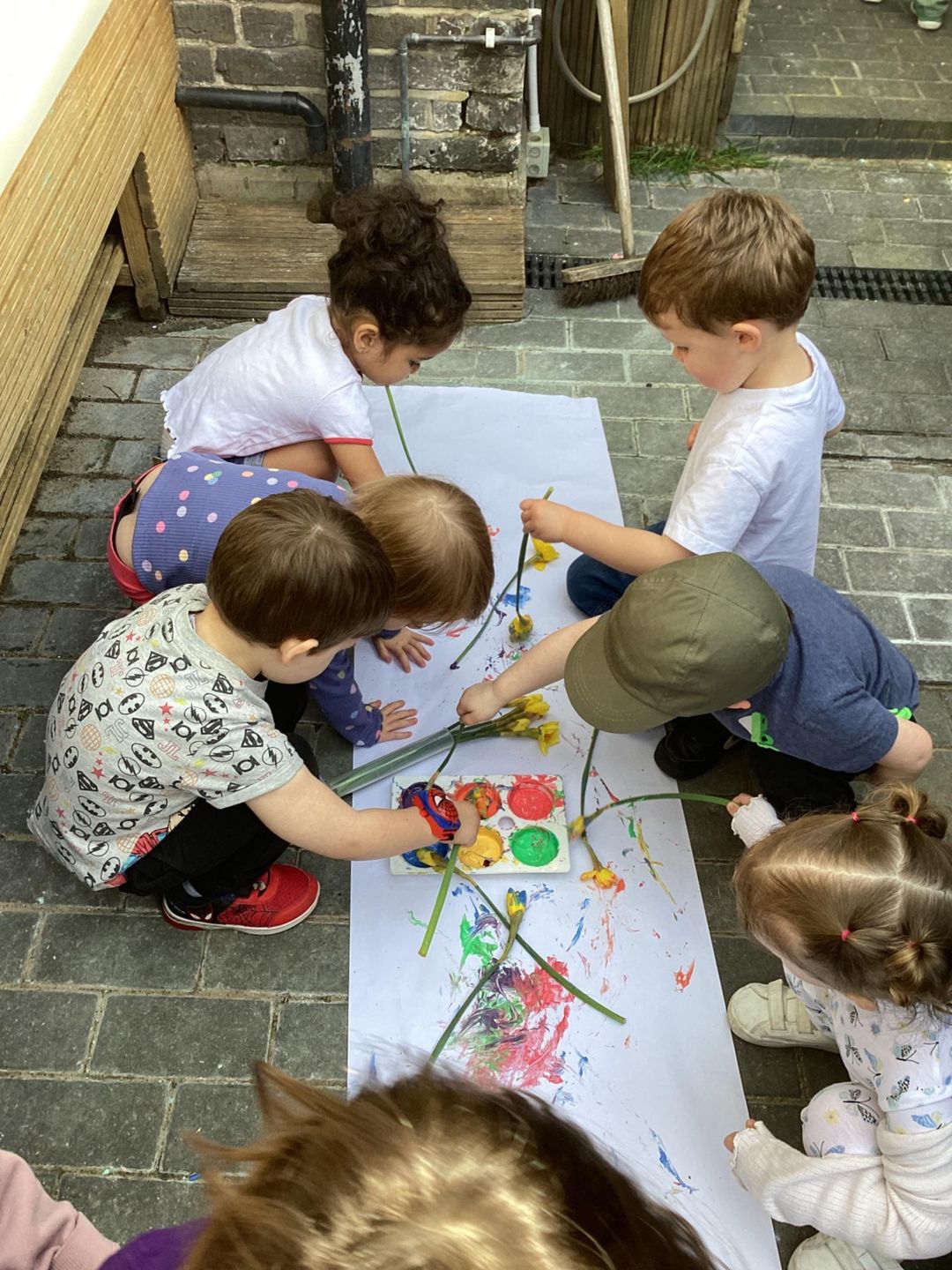The Grasshoppers enjoyed creating a spring-themed painting inspired by daffodils and bright seasonal colours. As they explored their creativity, they also developed their fine motor skills by carefully holding the flower stems, practising both pincer and palm grips. This hands-on activity supported their control and coordination, helping to build the foundations needed for more precise movements, such as drawing.