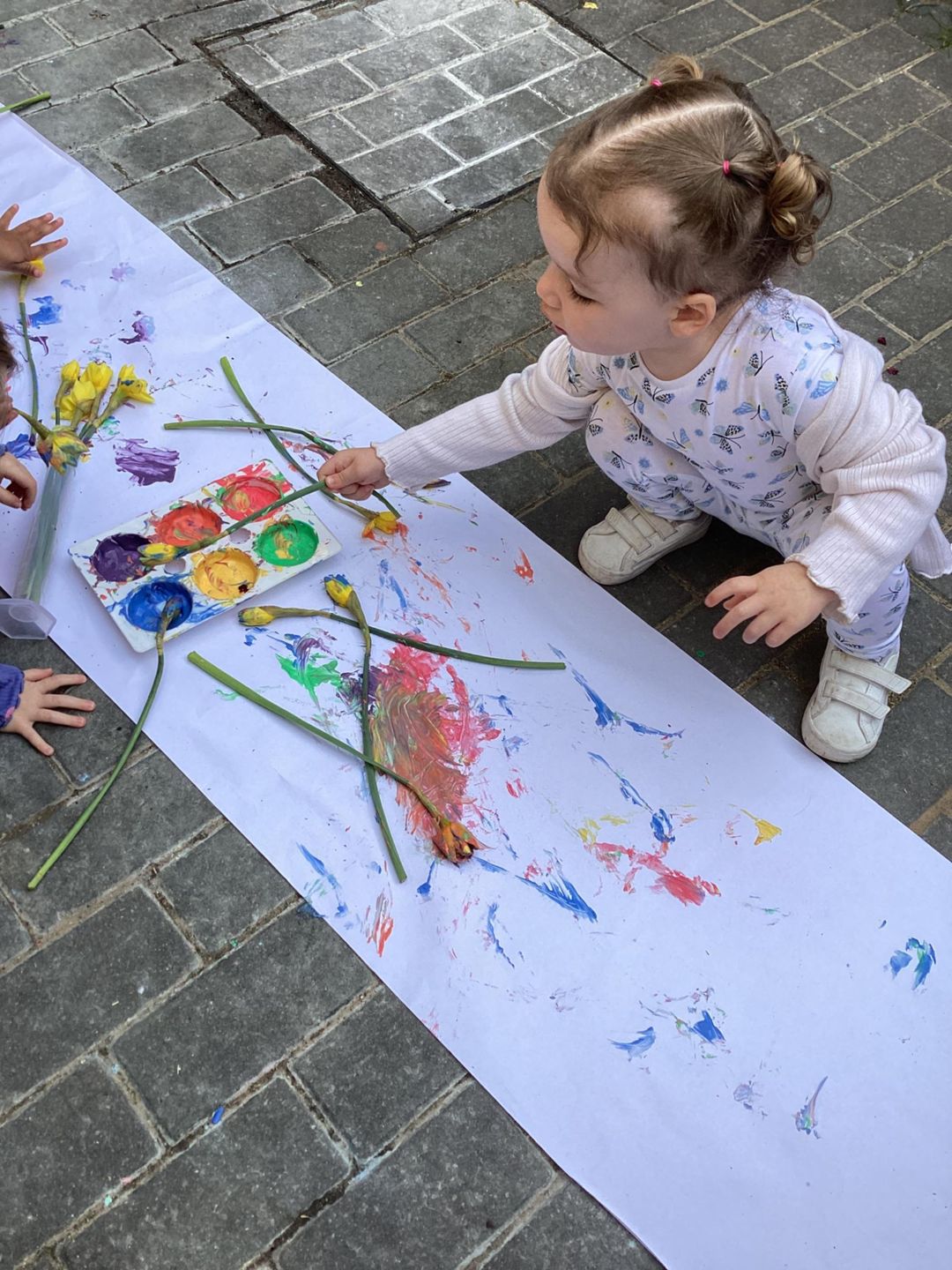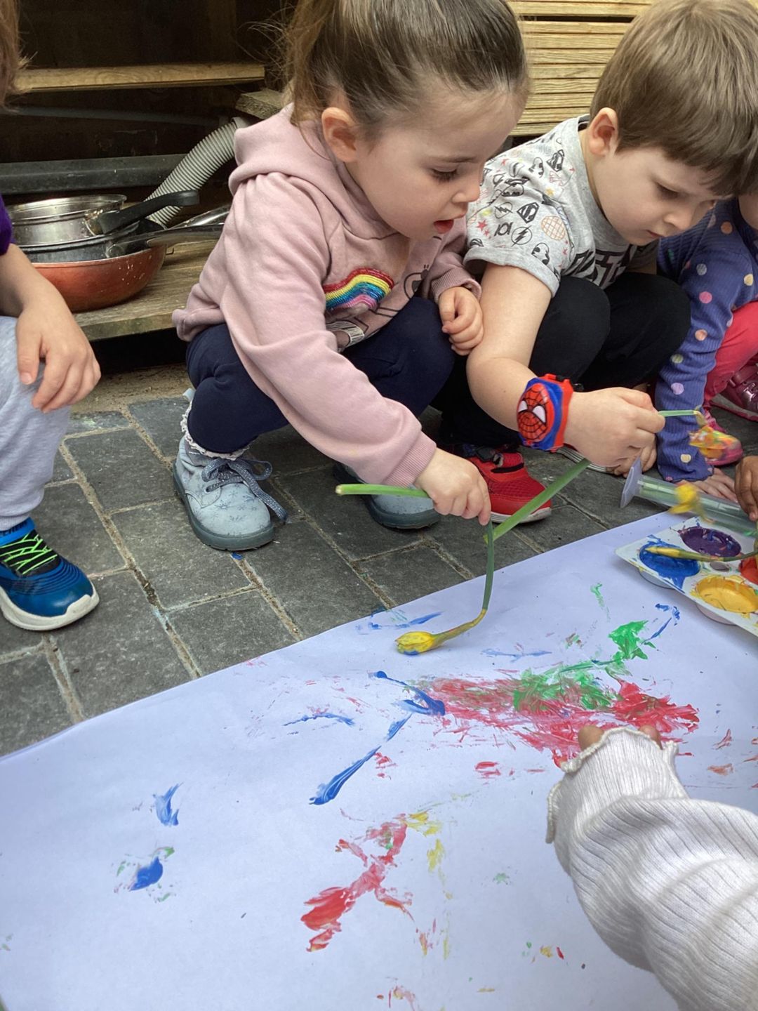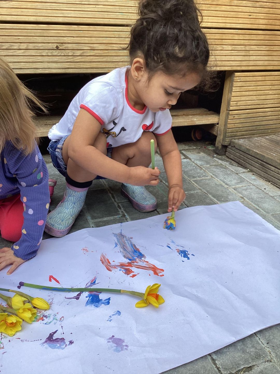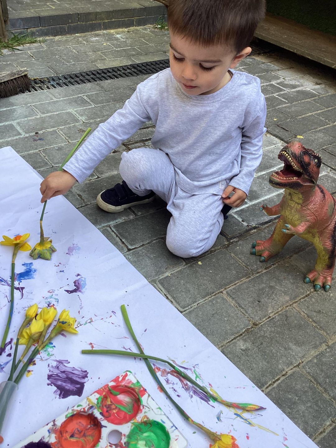 The Grasshoppers enjoyed creating a spring-themed painting inspired by daffodils and bright seasonal colours. As they explored their creativity, they also developed their fine motor skills by carefully holding the flower stems, practising both pincer and palm grips. This hands-on activity supported their control and coordination, helping to build the foundations needed for more precise movements, such as drawing.