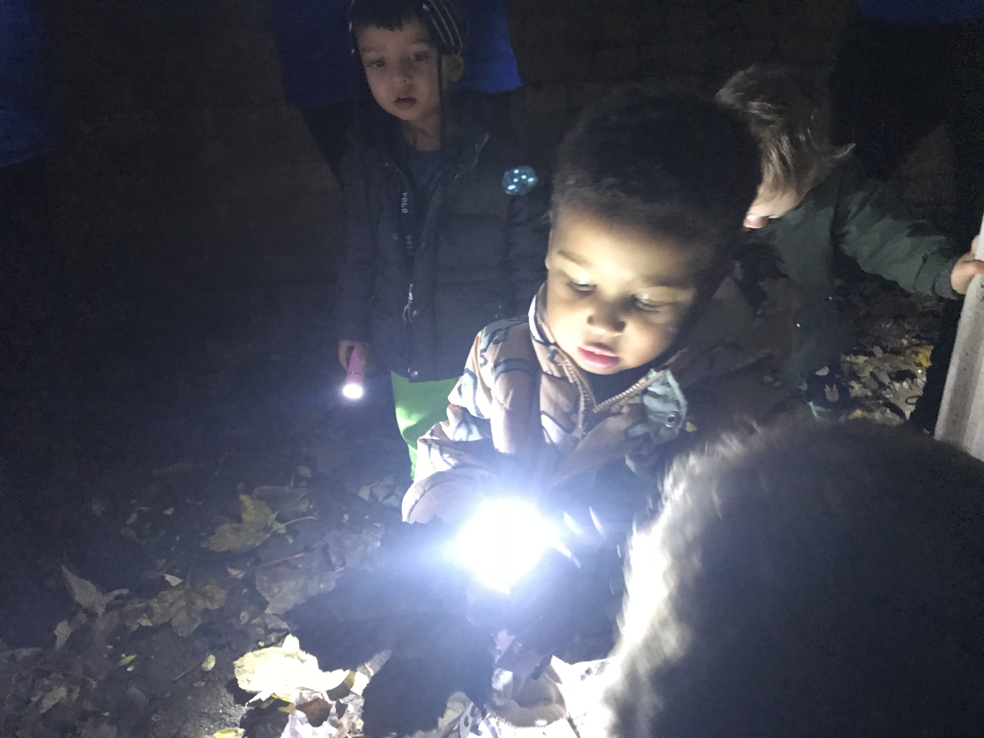 Children used the torches to look for minibeasts. Locating a spider and a beetle.