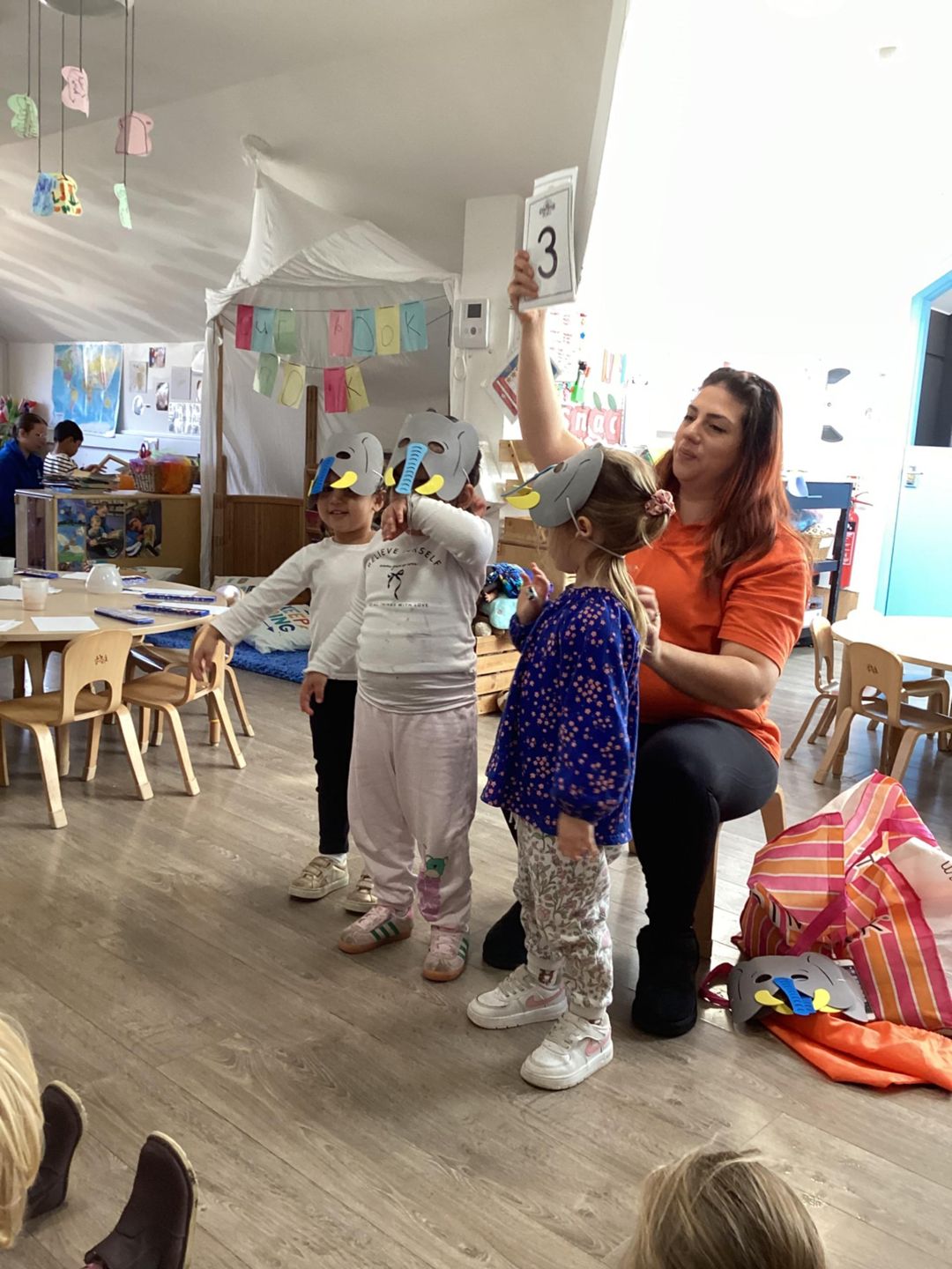 Today the star’s really enjoyed their counting kids session. They started off by each participating in the elephant dance where one by one they would come up and do an elephant dance until there was 5 of them. Then they each took it in turns to roll a dice to a friend and count which number they landed on, once they knew which number it was they decided on what movement to do that amount of times, for example “clap 5 times” or “jump 3 times”. The stars were super engaged and at the end they each had to show the number 5 or 5 different actions to get a sticker. Well done.