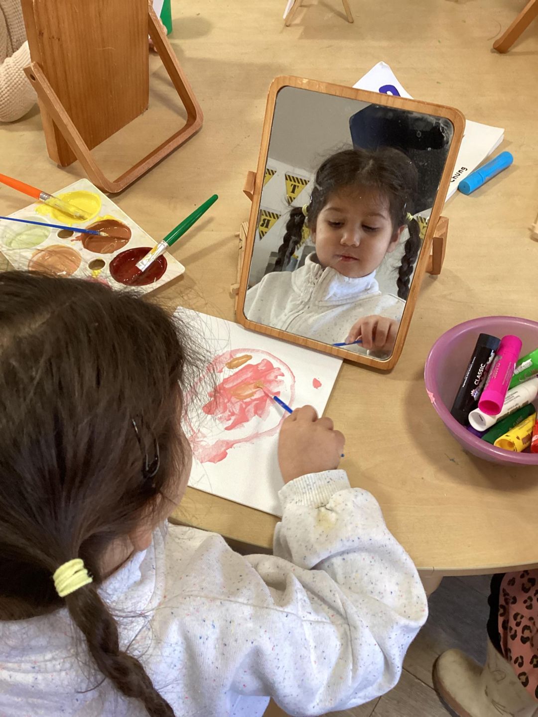 Today the star’s participated in a self-portrait activity that encouraged creativity and self-expression. As they worked on their pictures, the star’s carefully observed their own facial features, paying attention to details like shape, color, and expression. Through this process, they developed important skills such as fine motor control while drawing and coloring, visual perception as they compared what they saw in the mirror to what they put on paper, and decision-making as they chose colours and different ways to represent themselves. The activity also supported confidence and self-awareness, allowing each participant to celebrate their individuality while proudly sharing their finished self-portraits with others. Well done star’s