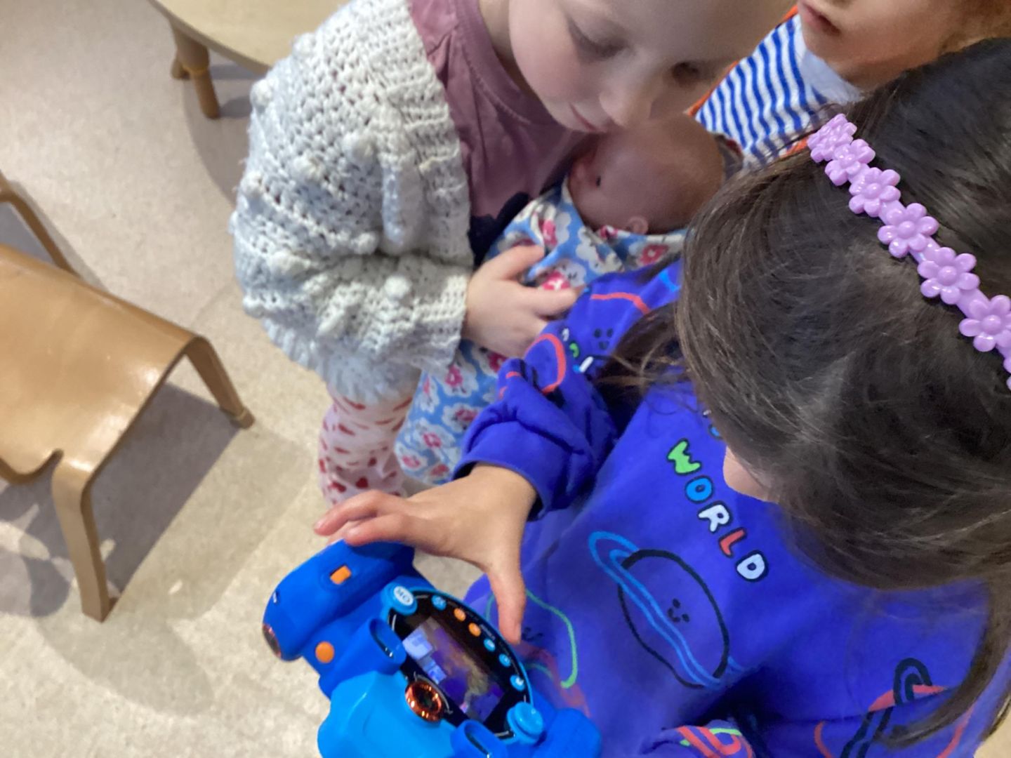 The children were especially excited to use our VTech children’s cameras. These cameras are designed specifically for young children, making them durable, easy to use, and perfect for little hands. The children loved taking photos of their friends, favourite toys, and familiar adults around the setting, which encouraged confidence, curiosity, and lots of smiles!