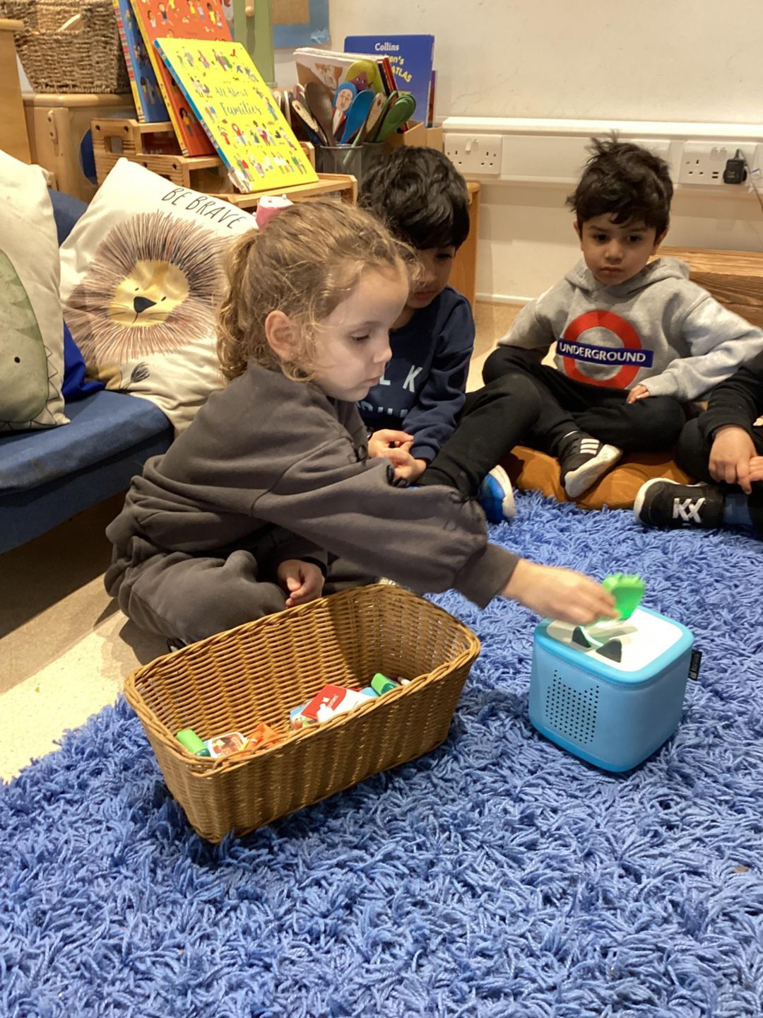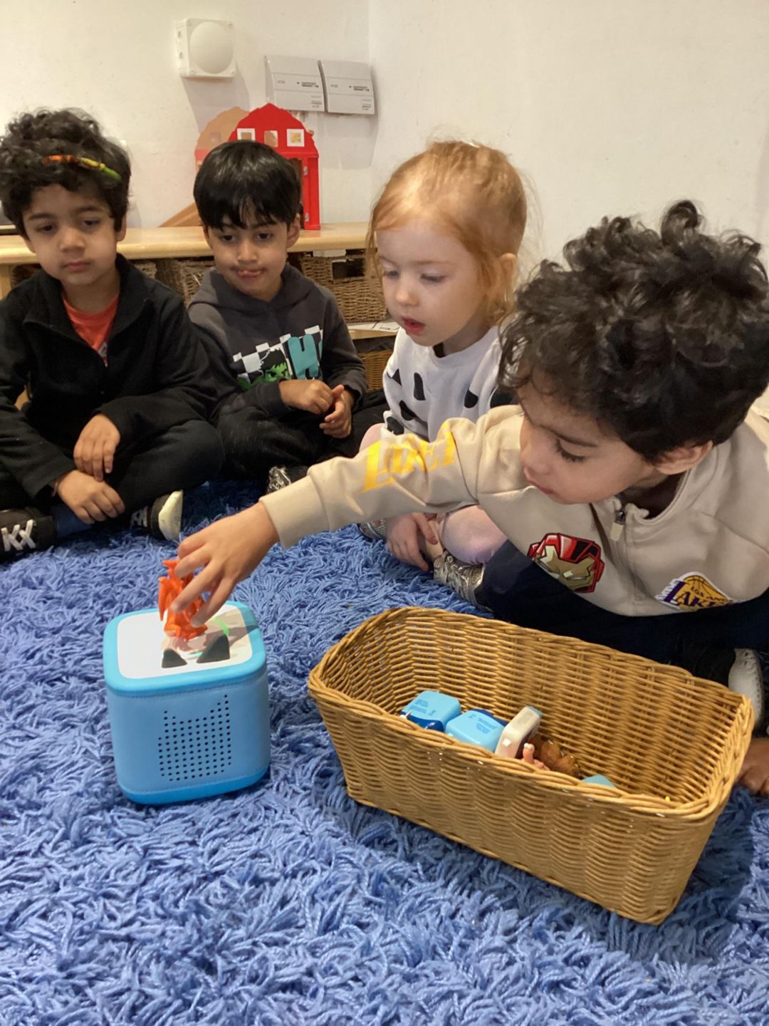 We have also recently purchased a Toniebox, a screen-free audio system that allows children to listen to stories, songs, and educational content independently, however this will always be supported by a team member at preschool. By placing a Tonie character on top of the box, children can choose what they would like to listen to, supporting listening skills, imagination, and independence. The Toniebox has already become a calming and engaging resource within our environment.
