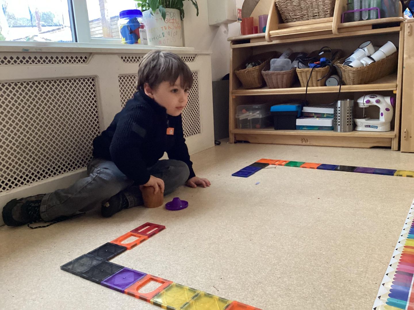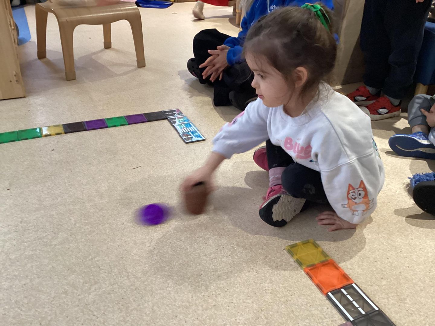 The Blaze class had a great time playing air hockey! We watched as Beth cleverly built a game using magnetic tiles. After everyone learned the rules, we started playing in pairs. Using two wooden cups and a glue lid to act as the paddles, the Blazes took turns hitting the puck, aiming to score. It was fantastic to see teamwork and cooperation in action.