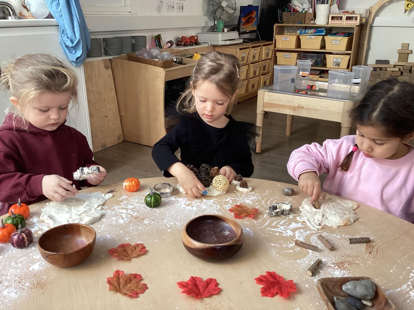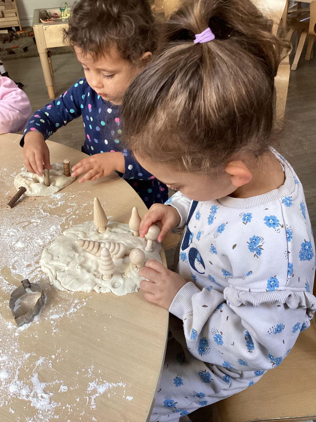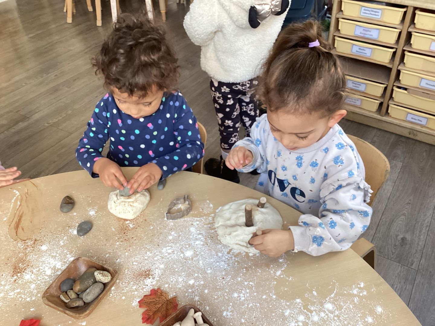 As we talk about the change from autumn into winter the star’s really enjoyed playing with our natural autumn play-dough today. While they were extremely engaged making things such as, rivers, forests, pumpkin patches, leaves and ponds. We all had discussions about how the weather has drastically changed and how we had snow the other day! The star’s told me they were very excited to see the snow and hope that it settles on day so they can play in it. We spoke about the changes in colours, and the children have been noticing the darker days as they explore the seasons.