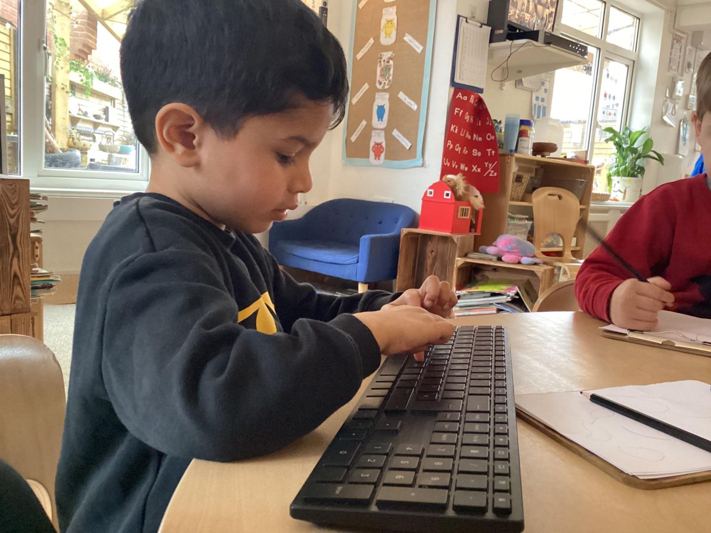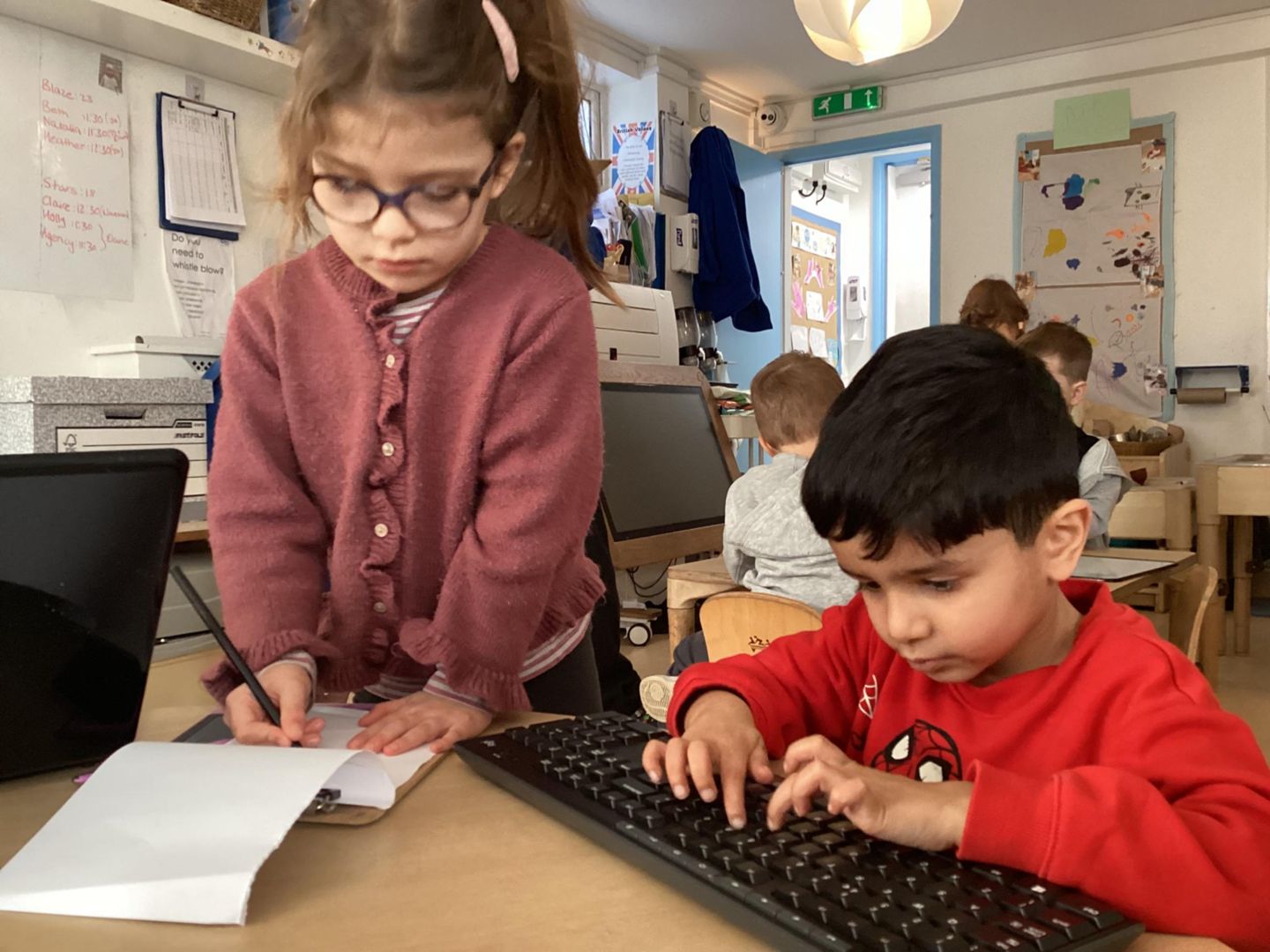 Today, the Blazes had lots of fun pretending to go to work. We created desks with paper, keyboards, notepads, and telephones. The children enjoyed answering pretend phone calls, typing emails, writing important notes, and organising their “work” for the day.