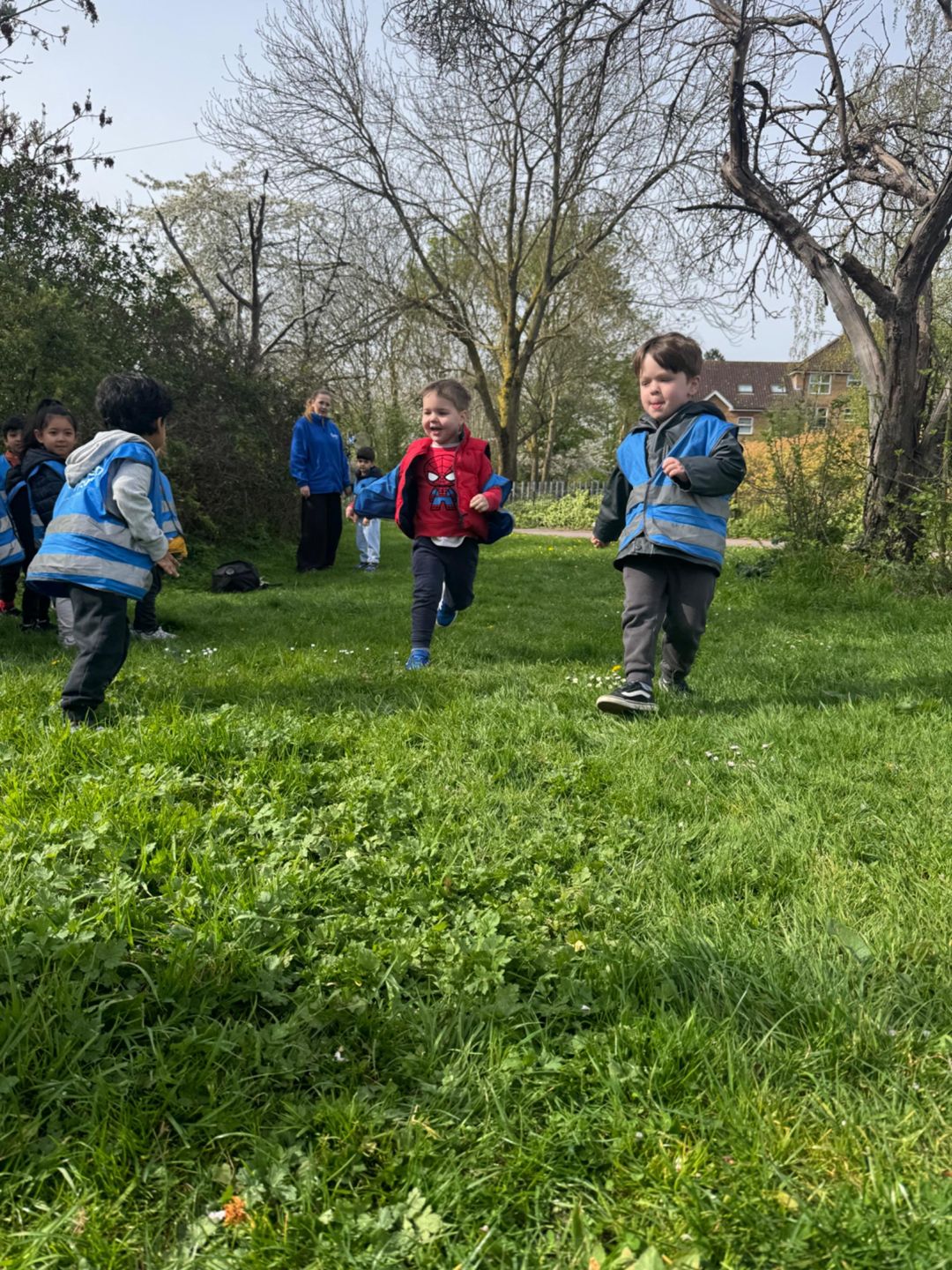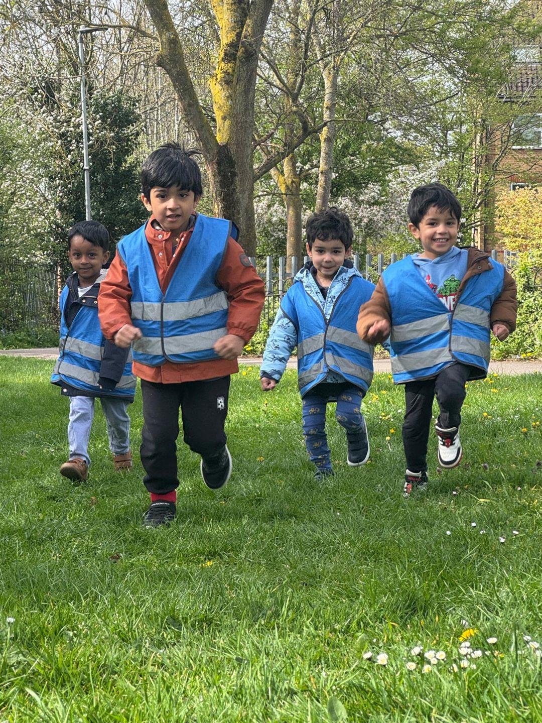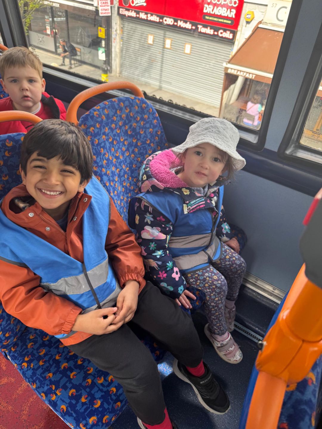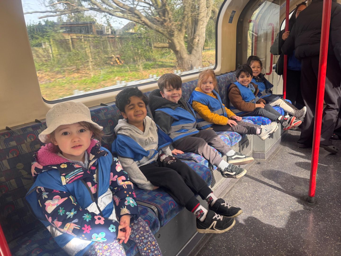Today, the Blaze class enjoyed an exciting morning outing. We began our adventure by walking down to Buckhurst Hill station to catch the train. During our walk down the hill, we observed the various shops and locations along our route within the local community surrounding our nursery. Once we arrived at the train station, we watched several trains come in over the bridge, examined the different train station signs, and even boarded the train all the way to Debden. After getting off the train, we decided to take a quick break for some snacks and to play games, including 'I Spy', listening to the birds, and engaging in physical games.