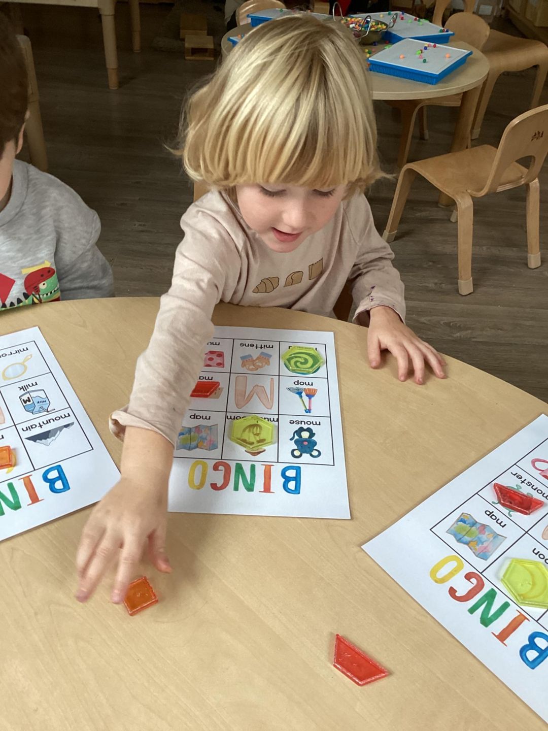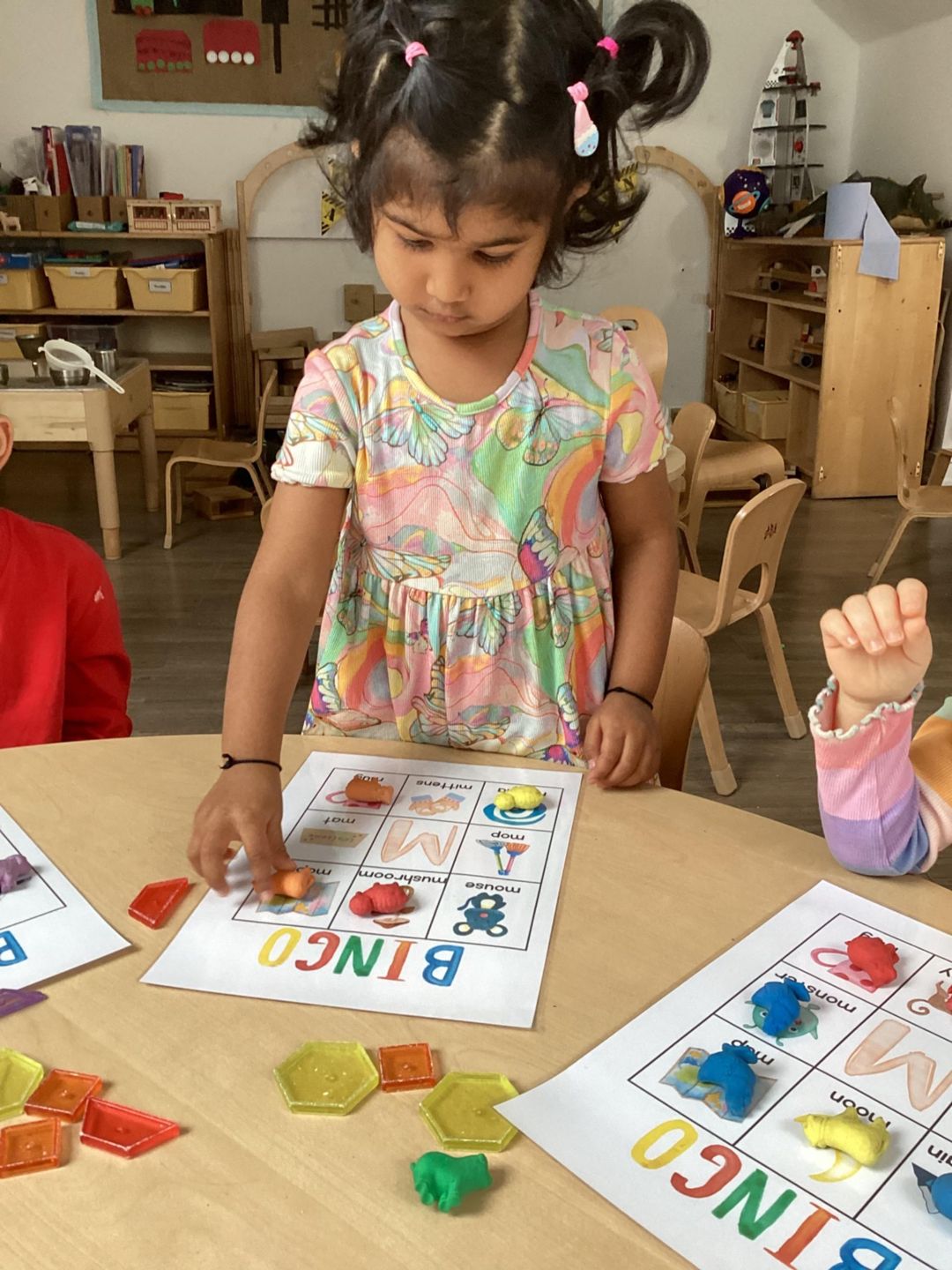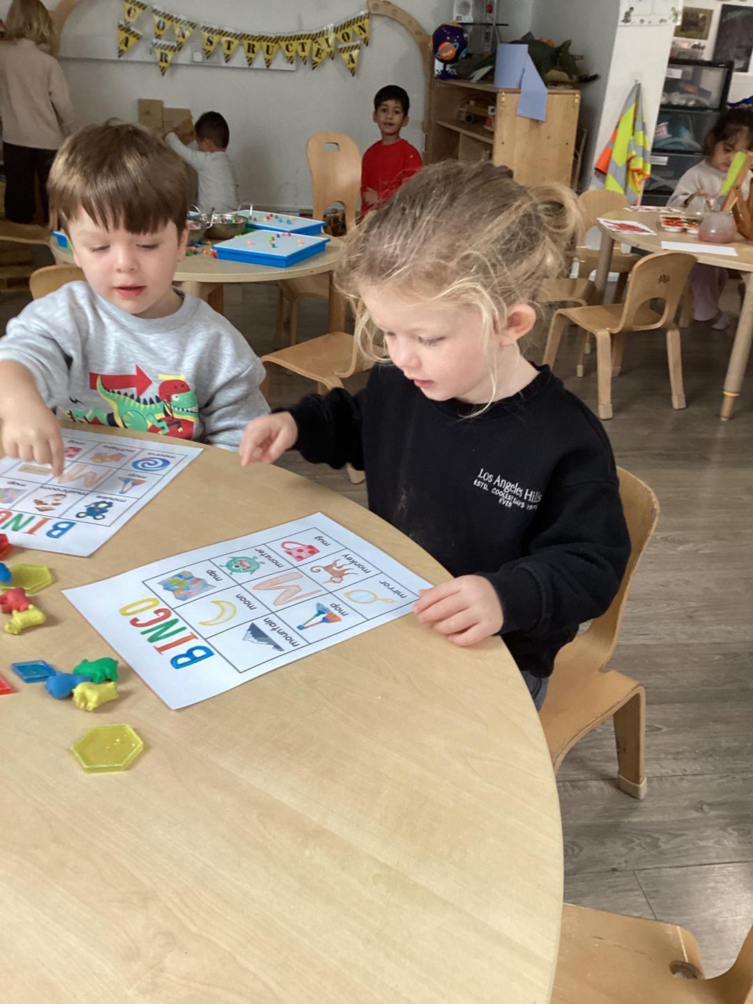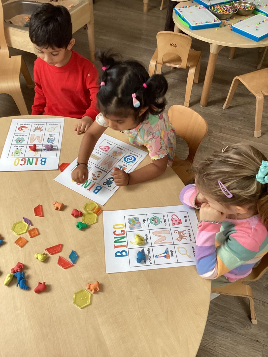 Today the Stars enjoyed playing Phonics Bingo, practicing words for our Phonic of the Week which is M. They went over the name and sound of M, and recounted all of the objects they found the their Phonic Basket yesterday before learning how to play Bingo.
