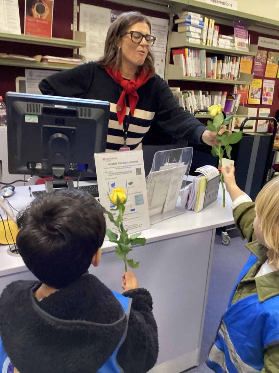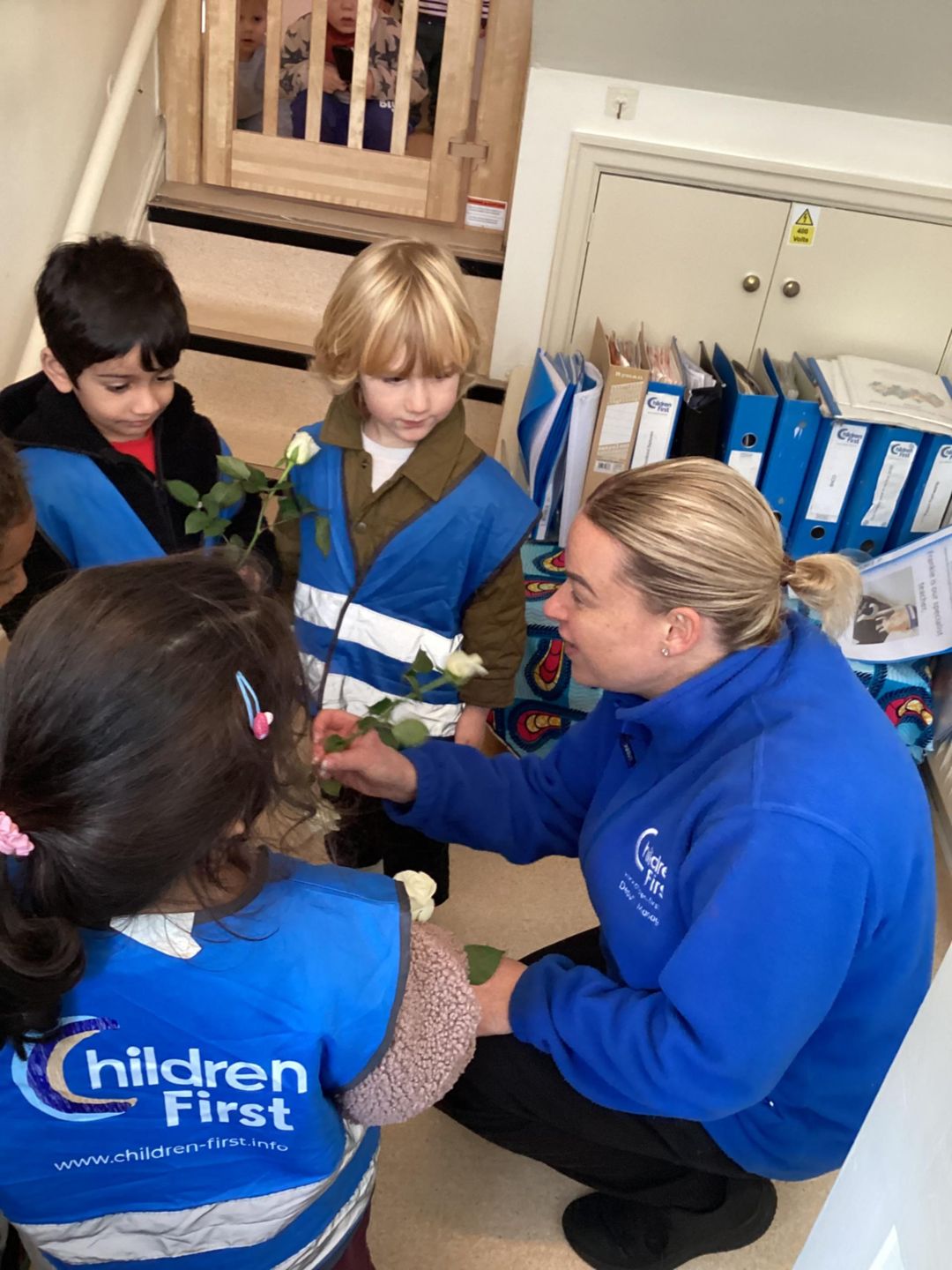 Today the Star children went on an adventure to spread kindness for world kindness day. They started by taking a walk to Waitrose to buy some roses to give out to people within the local community. They chose the flowers themselves and paid for them at the till. After they walked up the hill and visited baby nursery, the rabbit and stars toy shop, simple coffee shop, the library to give people roses and spread joy; they also gave roses to people they saw along the way! So many people said that the roses made their day and were so grateful.